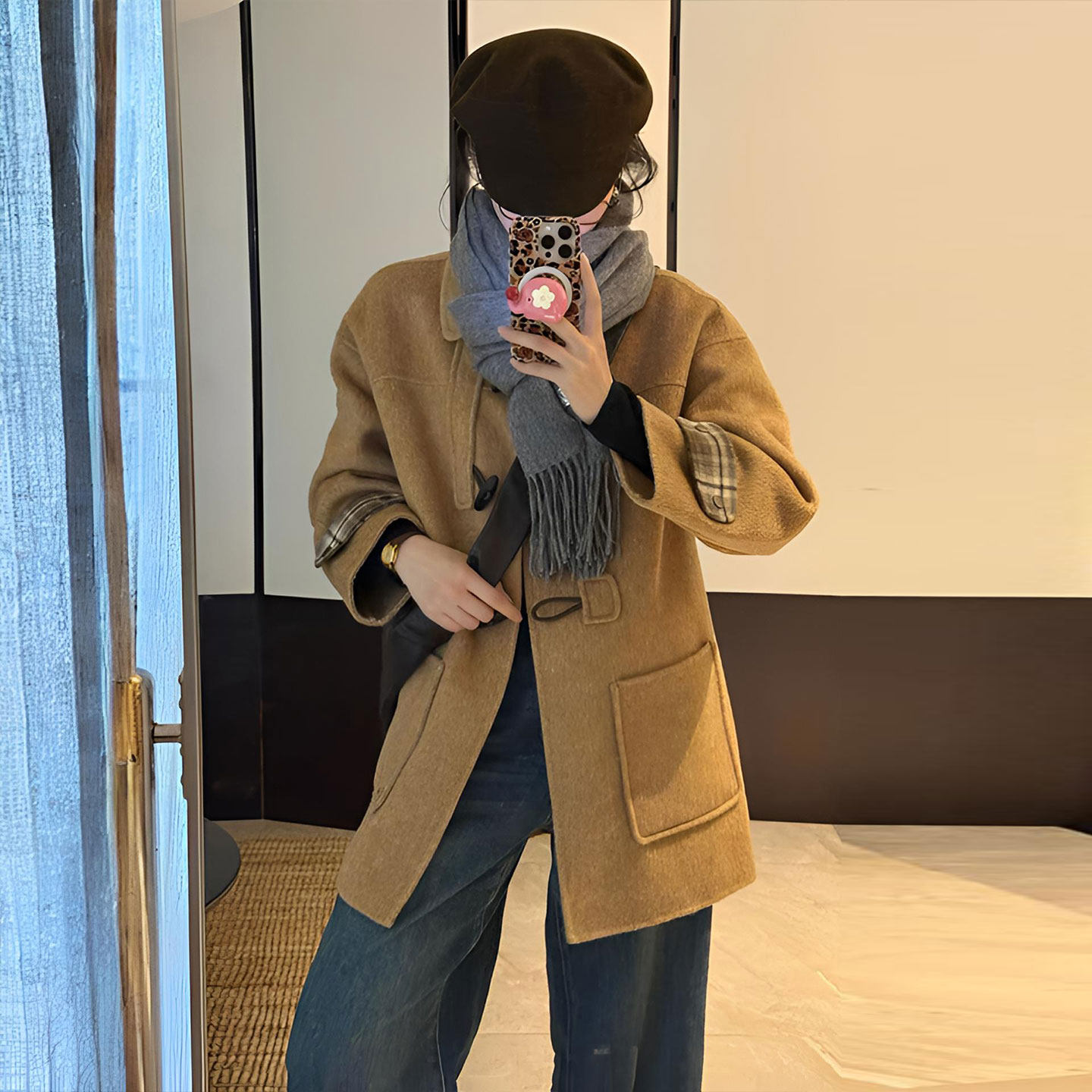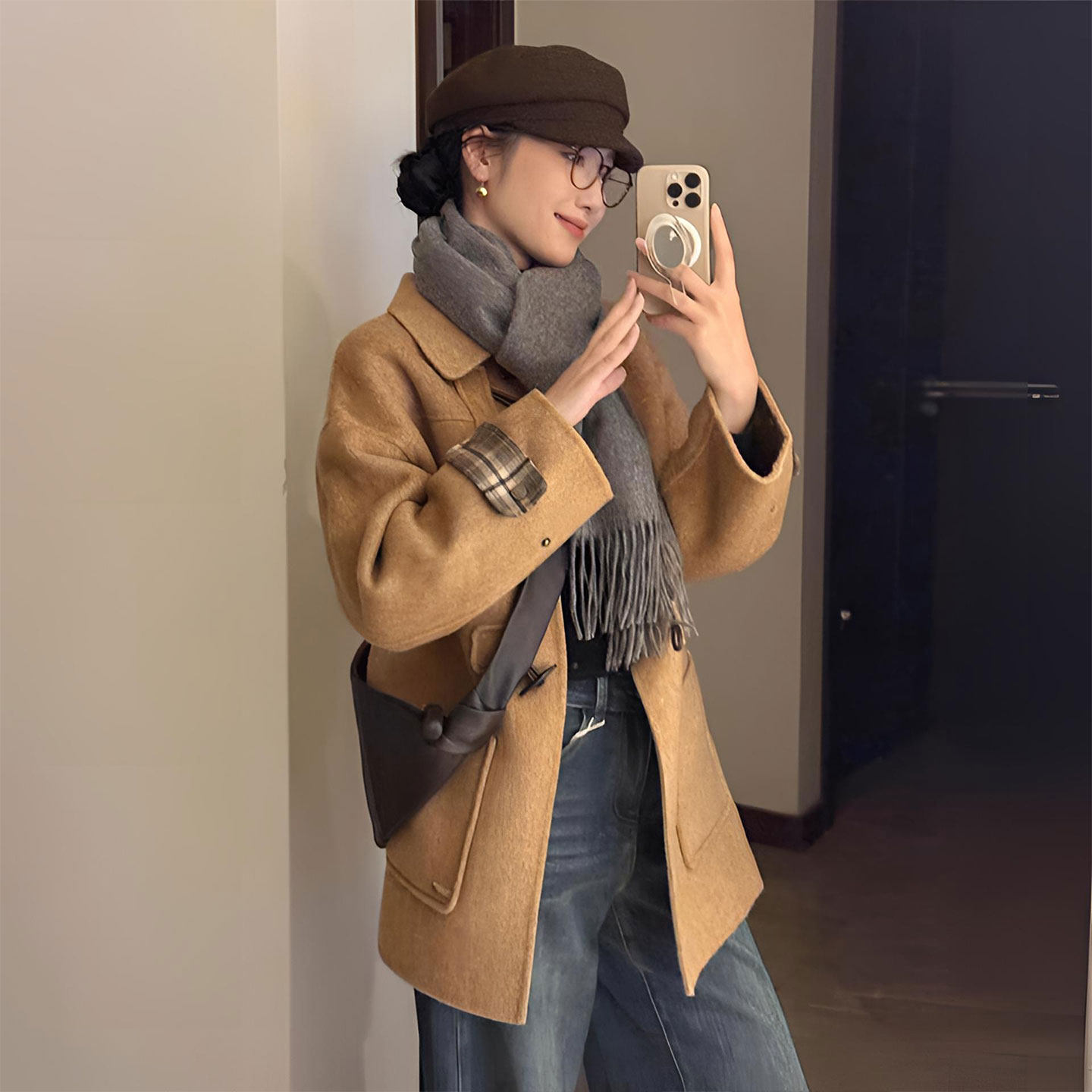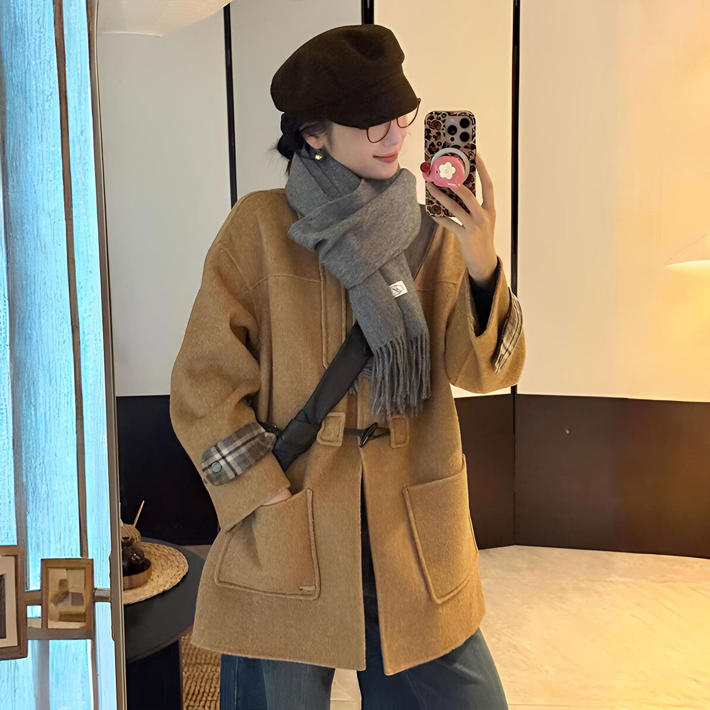 这款特大码女装中长款毛呢大衣,专为胖MM设计,融合学院风与韩系穿搭精髓,兼具显瘦、减龄与优雅气质。采用优质毛呢面料,挺括有型,中长版型巧妙修饰身形,视觉拉长比例。宽松剪裁包容性强,藏肉不束缚,搭配经典翻领与简约纽扣,尽显知性文艺范儿。柔和的色调如燕麦色、深咖或藏青,百搭又显肤白,轻松打造秋冬温柔氛围感。无论是搭配针织衫、阔腿裤还是连衣裙,都能穿出慵懒时髦的韩系学院风,让大码女性也能自信出彩,穿出属于自己的独特魅力。