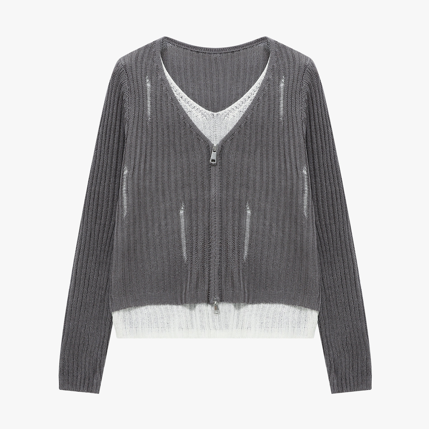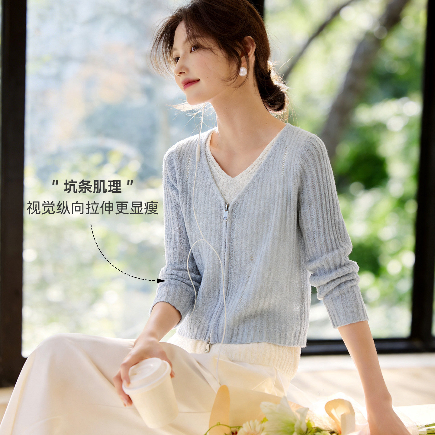 pusumede 头号甜心 复古圆领麻花毛衣开衫外套女气质针织衫上衣