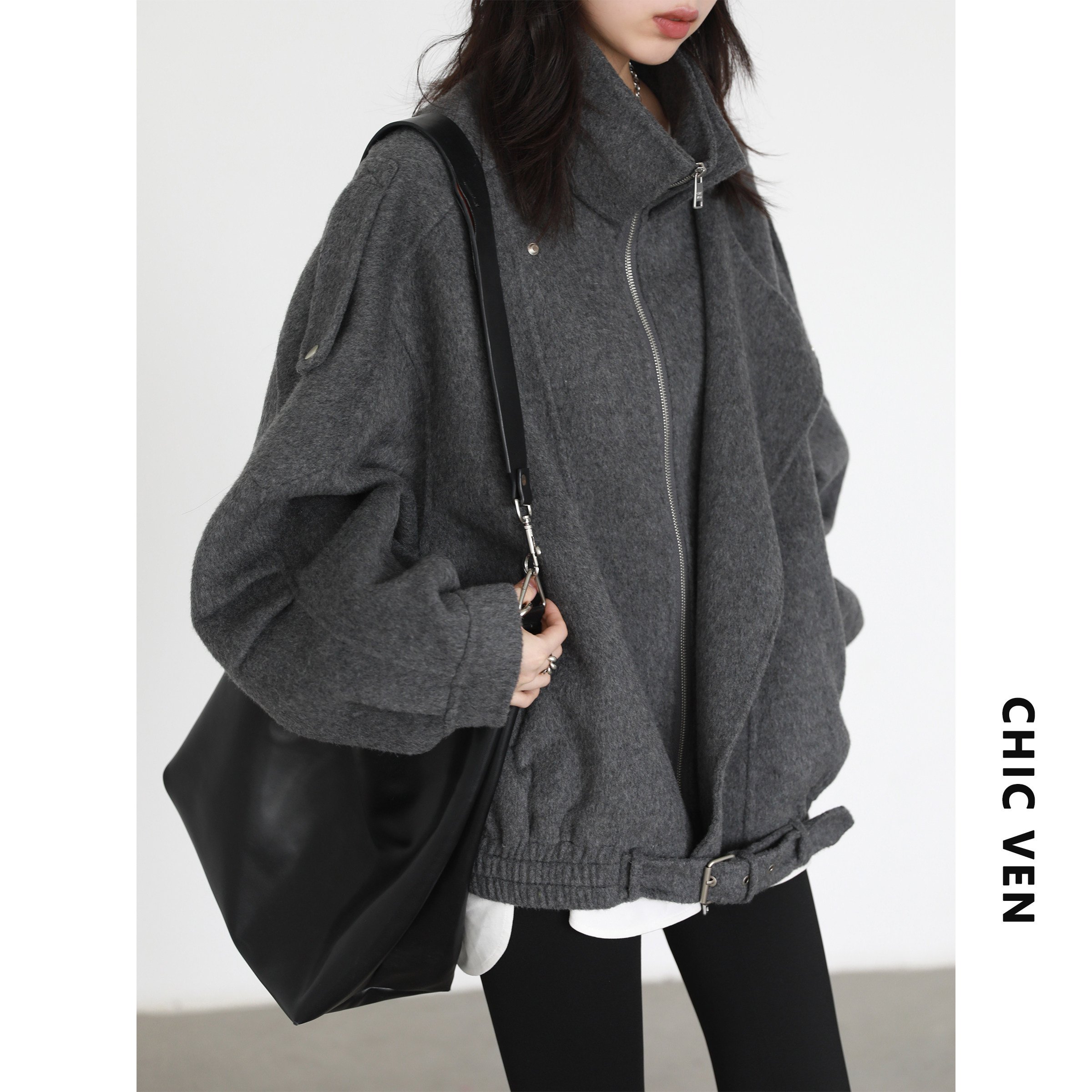 2024春季新款CV大码女装机车风立翻领毛呢大衣,专为追求个性与舒适并重的胖MM设计。采用优质羊毛呢面料,挺括有型,防风保暖,兼顾时尚与实穿性。经典立翻领设计,融合机车元素,线条利落,彰显酷飒气质。宽松H版型剪裁,包容性强,轻松修饰身形,遮肉显瘦。前襟双排金属扣点缀,细节精致,提升整体质感。袖口与下摆走线工整,彰显匠心工艺。多色可选,百搭易穿,无论是日常通勤还是休闲出行,都能轻松驾驭,展现自信风采。是微胖女性春季衣橱的必备单品。