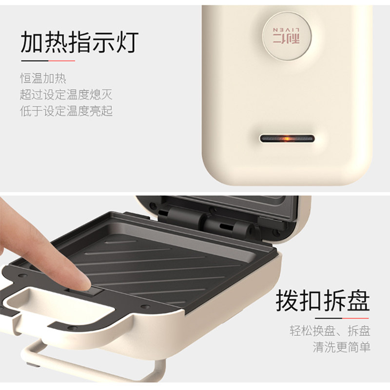 天猫利仁三明治机早餐机家用多功能轻食机华夫饼小型烤面包吐司机新款