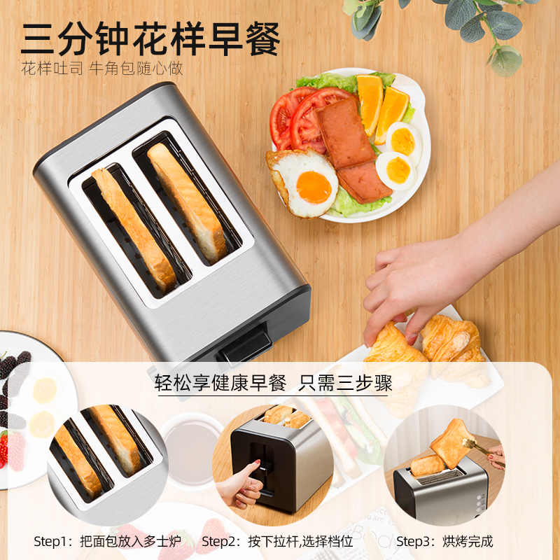 天猫Silede出口英国烤面包机家用早餐机小型烤土司三明治不锈钢多士炉