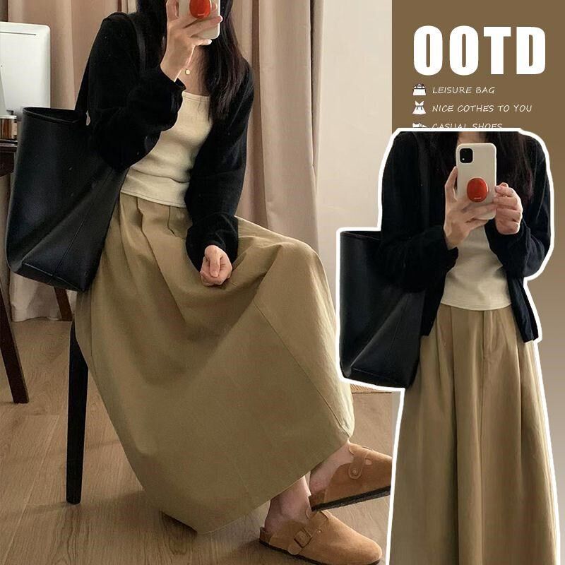 淘宝孕妇半身裙套装2025春季新款气质卡其色a字半裙复古包臀长裙伞裙