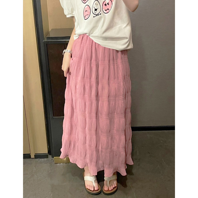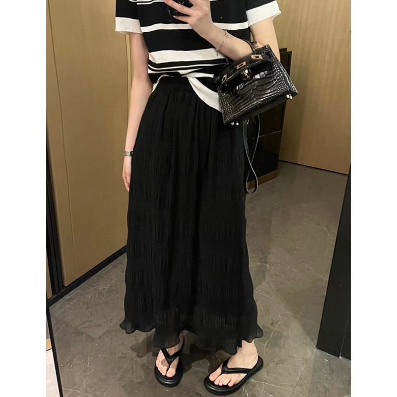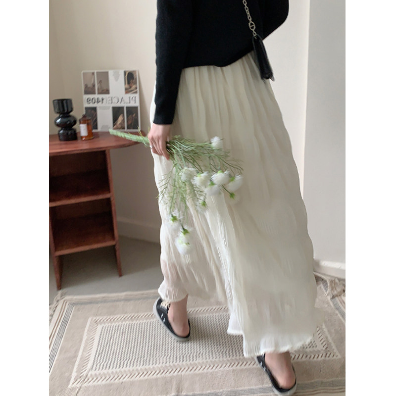 淘宝孕妇雪纺褶皱半身裙春秋季薄款外穿时尚白色中长款夏装A字蛋糕裙