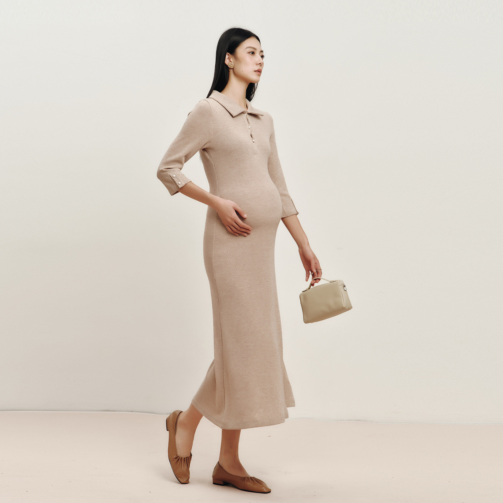 SELLYNEAR 2026春季新款孕妇连衣裙,专为孕妈打造时尚与舒适兼具的穿搭体验。采用高品质弹力针织面料,柔软亲肤、透气延展,轻松贴合孕期身形变化。修身剪裁巧妙修饰腰腹线条,显瘦不紧绷,凸显优雅曲线。经典翻领设计搭配中袖造型,简约大方,彰显知性气质。裙身长度适中,活动自如,适合日常出行、办公或休闲场合。多色可选,易于搭配,让孕妈在孕期也能自信绽放美丽光彩。SELLYNEAR,用心呵护每一个温柔时刻,成就孕妈专属的时尚风采。