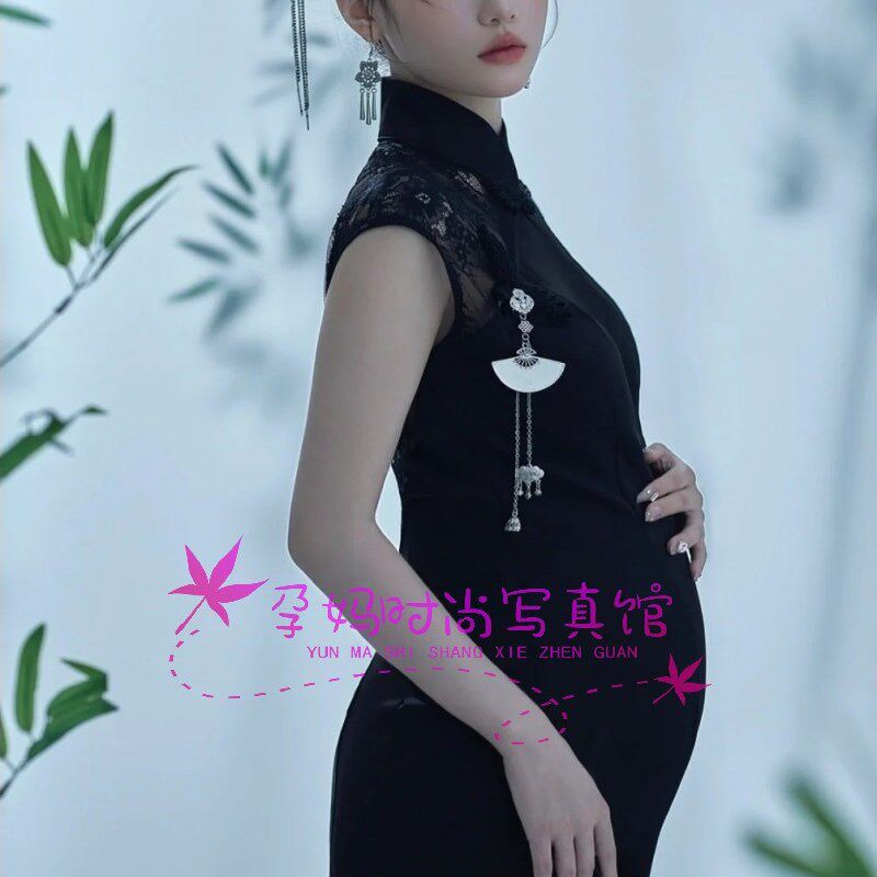 这款专为孕妇设计的中式复古黑色丝绒旗袍,融合传统东方美学与现代孕产时尚,采用高级丝绒面料,触感柔滑、垂坠有型,凸显优雅气质。立领盘扣、精致刺绣与流畅剪裁相得益彰,既保留古典韵味,又贴合孕期身形,舒适包容。黑色主调沉稳大气,搭配金线或暗纹提花,彰显低调奢华,完美契合影楼艺术拍摄需求。无论是端庄端坐还是轻抚孕肚的柔美姿态,都能展现孕妈独特魅力,定格孕期珍贵时光,是中式复古主题孕妇照的理想之选。