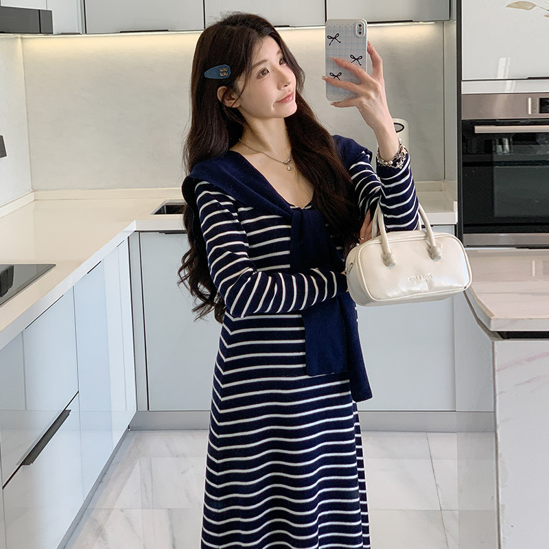 淘宝2026春季新款软糯修身长袖针织连衣裙松弛感披肩连衣裙