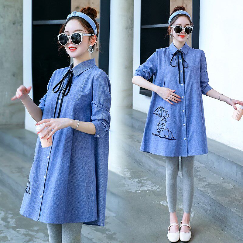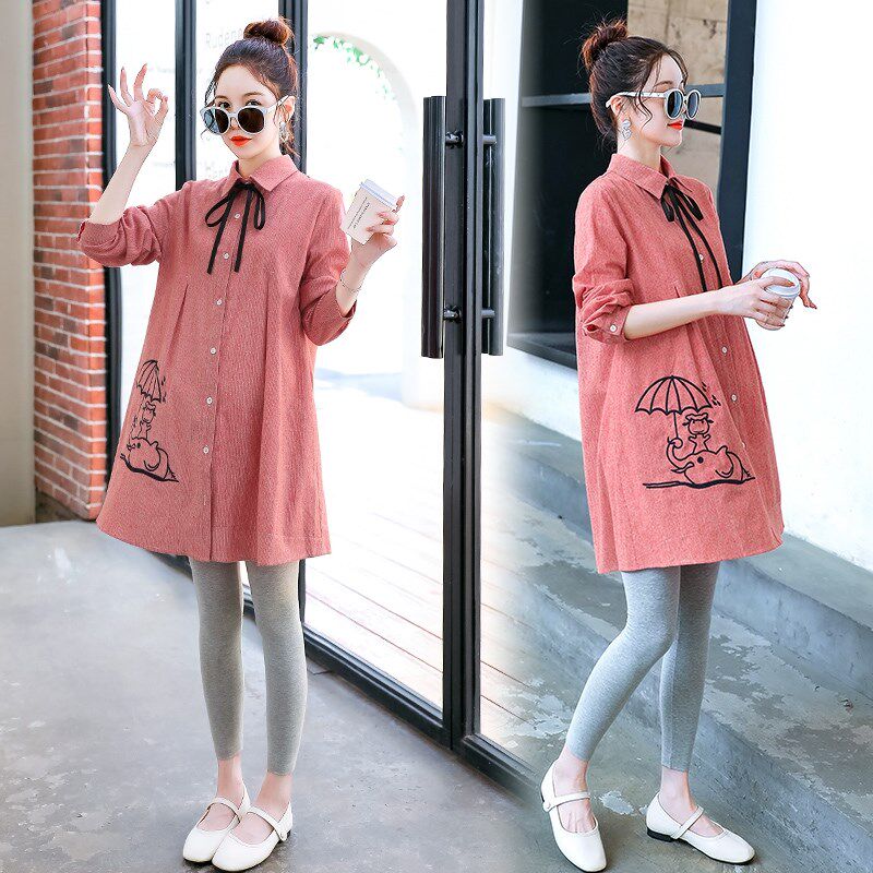 淘宝2024孕妇春秋新款连衣裙潮妈韩版时尚款套装秋装网红款显瘦衬衫裙
