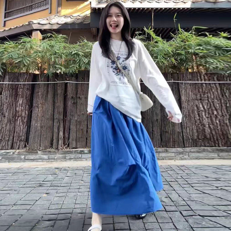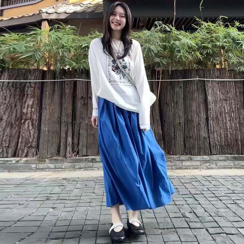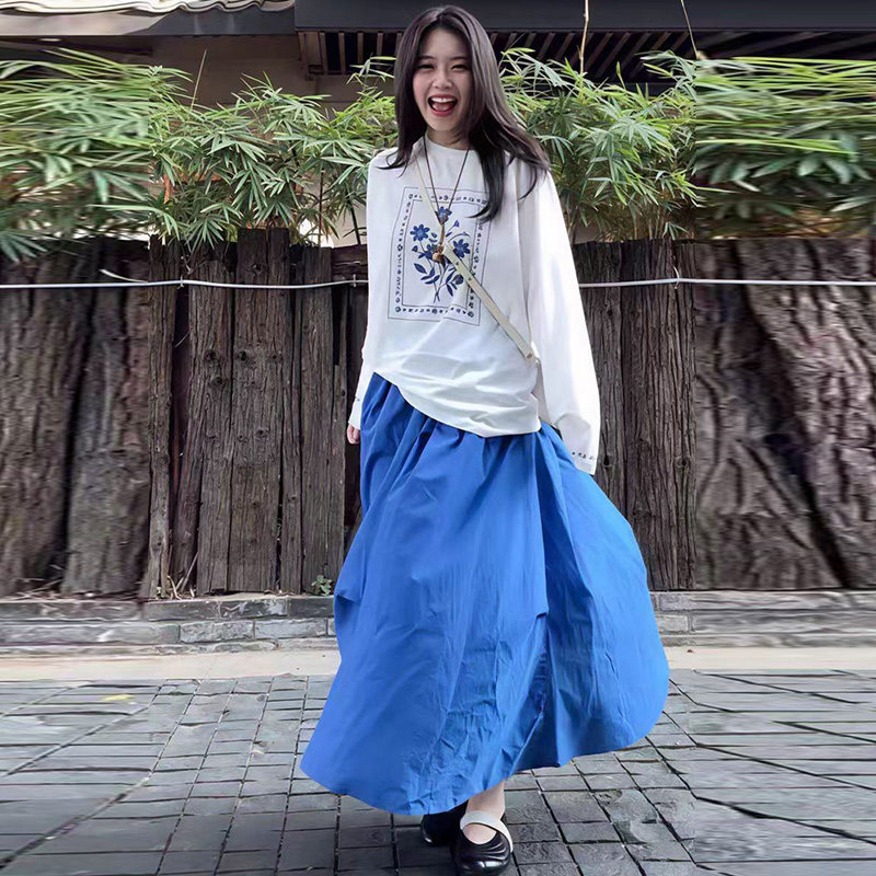 淘宝孕妇蓝色连衣裙套装春秋夏2026新款韩版印花长袖上衣裤子两件套女