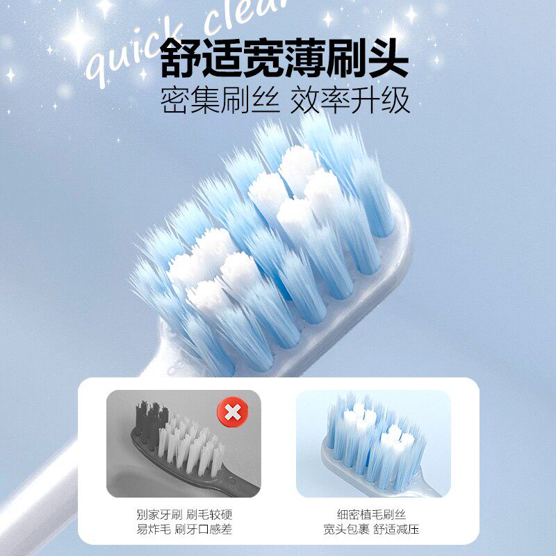 纳米级超柔宽头牙刷软毛情侣超细超软家庭装组合装防牙龈出血黑白