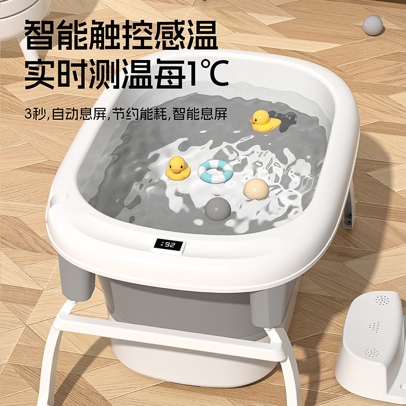 天可折叠儿童洗澡桶家用婴儿洗澡盆可躺坐大号小孩泡澡盆感温游泳桶