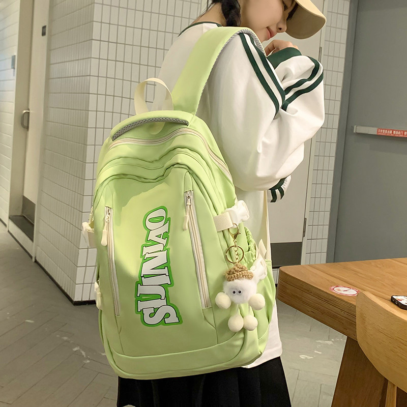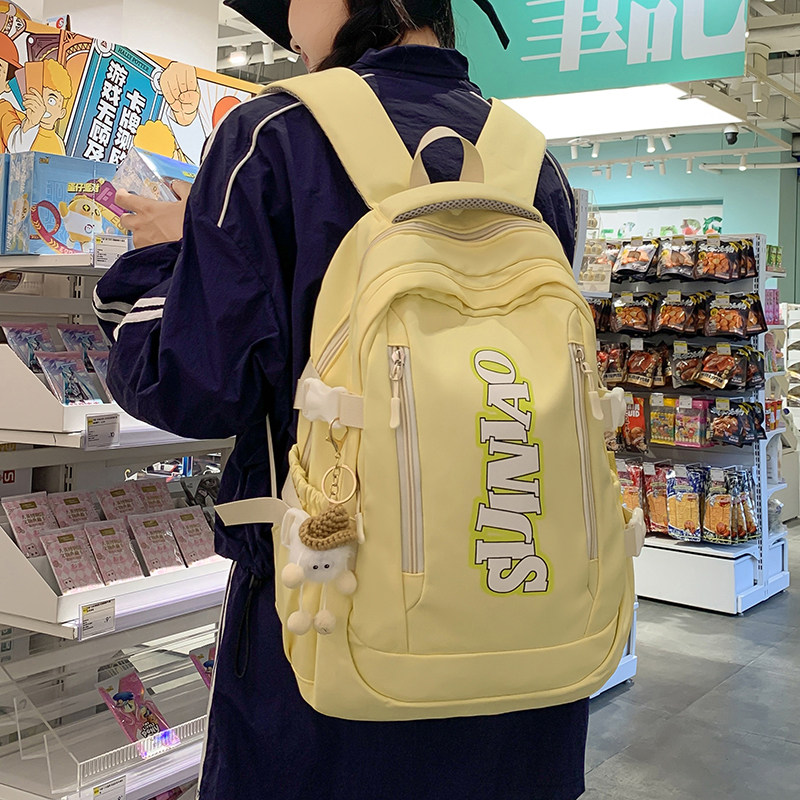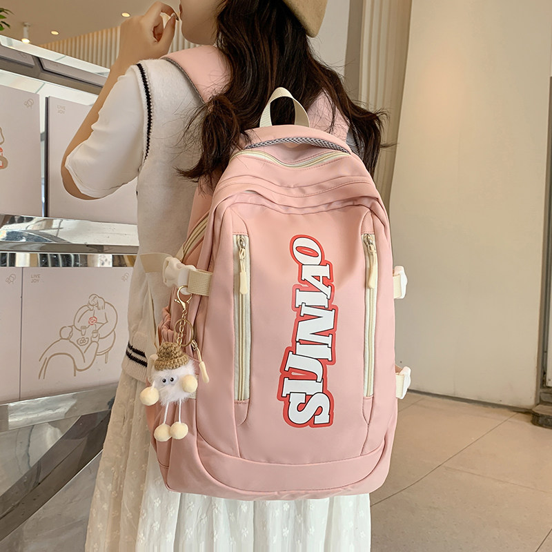 这款书包是近期INS爆火的高颜值大容量双肩包,专为初中生、大学生及年轻群体设计。外观简约时尚,配色清新百搭,轻松驾驭校园、旅行、日常通勤等多种场景。采用优质耐磨面料,轻盈防水,结实耐用。内部空间宽敞,分层合理,可容纳课本、笔记本、水杯、文具等物品,满足学生日常所需。加宽肩带与背部透气设计,有效减压护脊,长时间背负也不累。无论是上课、自习,还是短途出行,都是实用与颜值兼具的理想选择,深受学生党喜爱,堪称校园潮流新标配。