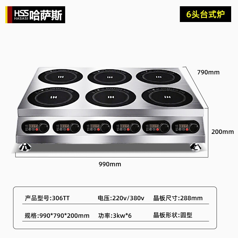淘宝哈萨斯商用电磁炉多头大功率3500四六八头电陶炉煲仔炉0W电磁灶三