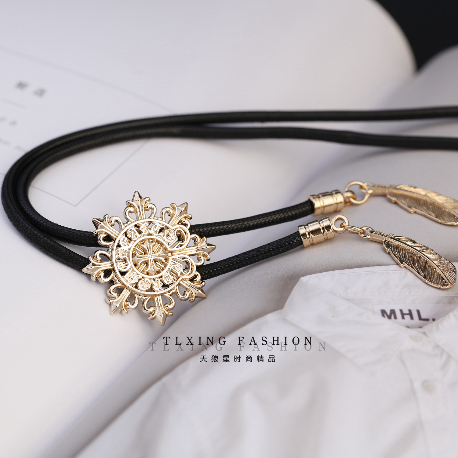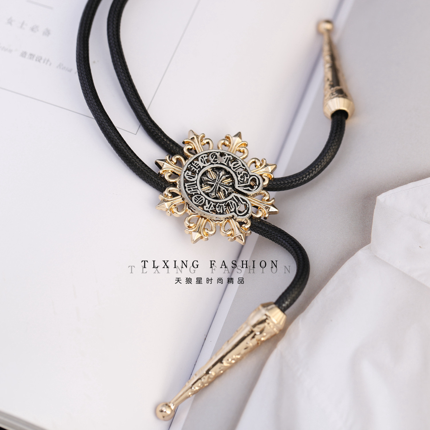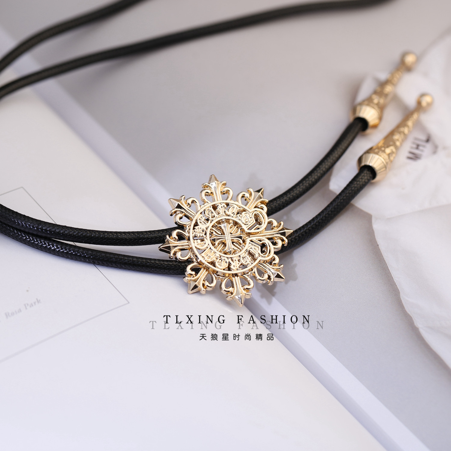天黑色领带衬衫女学院风男手打休闲时尚花朵线条拼接韩版细窄小众潮