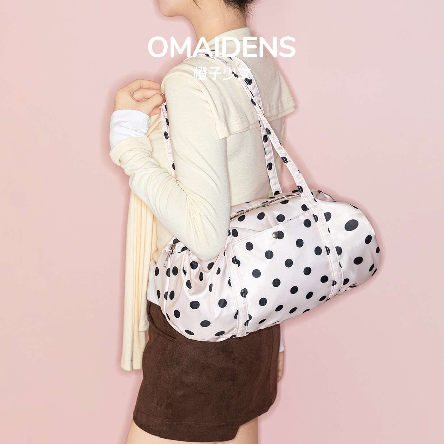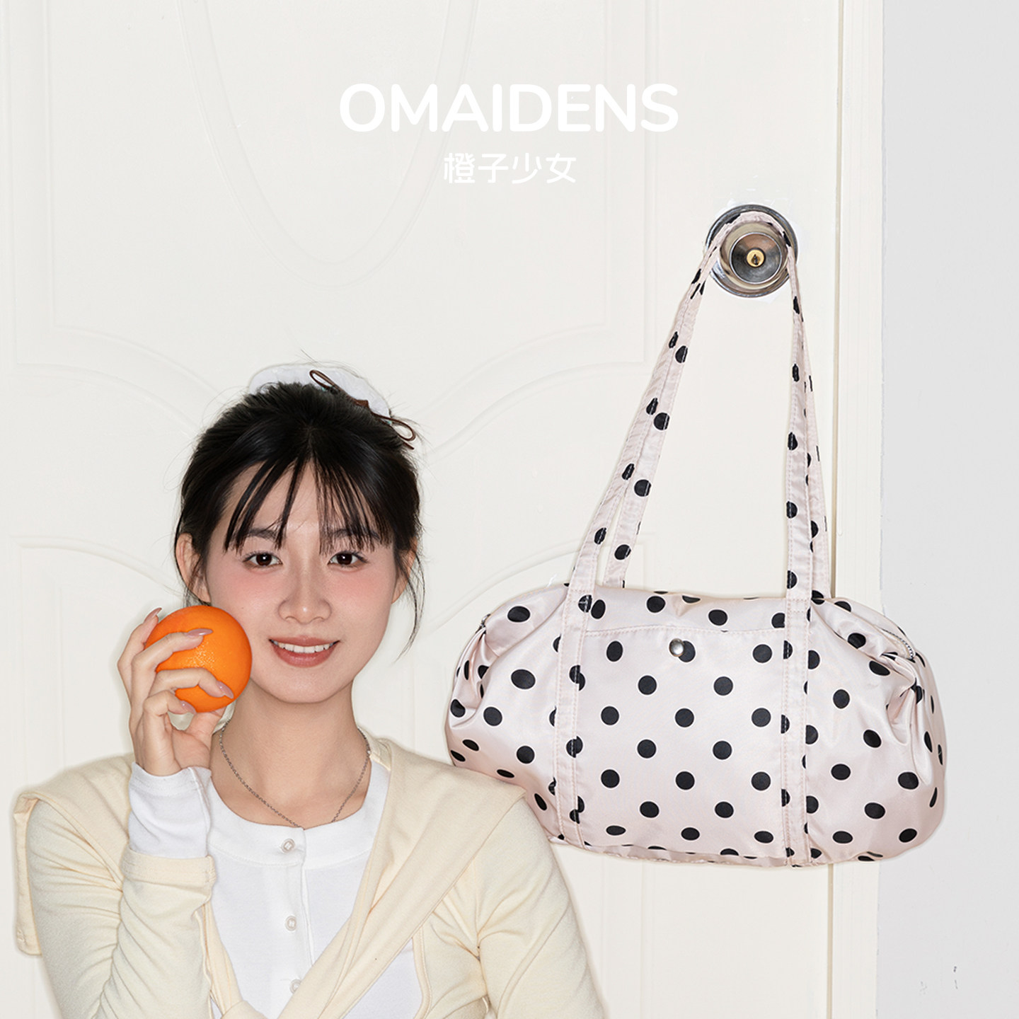淘宝橙子少女简约风波点帆布包春夏新款大容量托特包女百搭手提单肩包