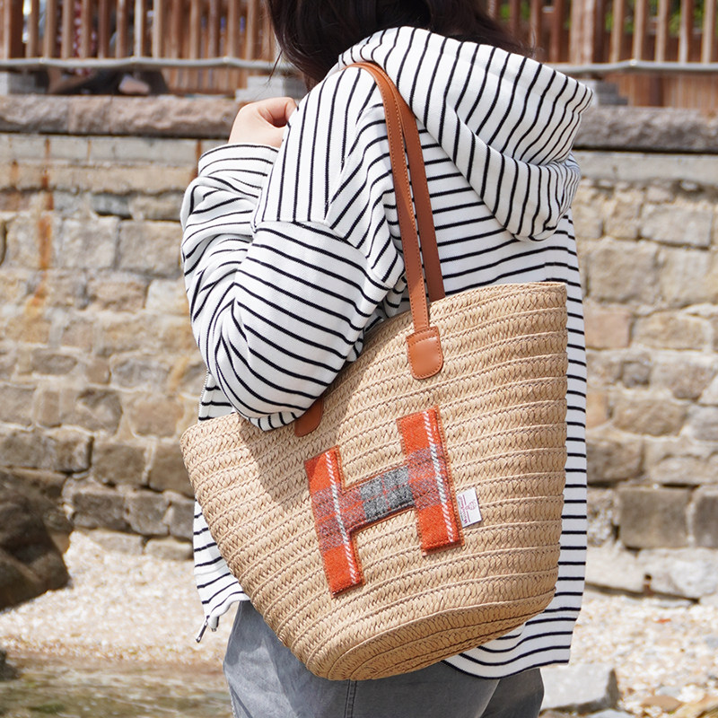 哈里斯粗花呢大容量女包,2024夏季新款,融合经典英伦格纹与现代度假风情。采用优质粗花呢与天然手工草编材质拼接,质感轻盈透气,尽显自然随性之美。超大托特包型设计,轻松容纳海滩巾、防晒用品与日常物品,满足海边度假与都市出行的双重需求。单肩背带舒适贴合,开合便捷,兼顾实用与时尚。无论是搭配连衣裙漫步沙滩,还是作为周末出行的点睛配饰,这款包都能为你增添优雅松弛的夏日氛围,是追求品质与风格女性的理想之选。
