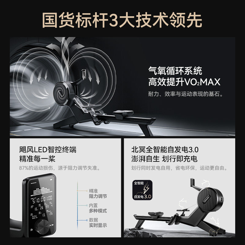 天猫绝影高端商用风阻磁阻双阻划船机智能家用健身器材静音折叠CR990