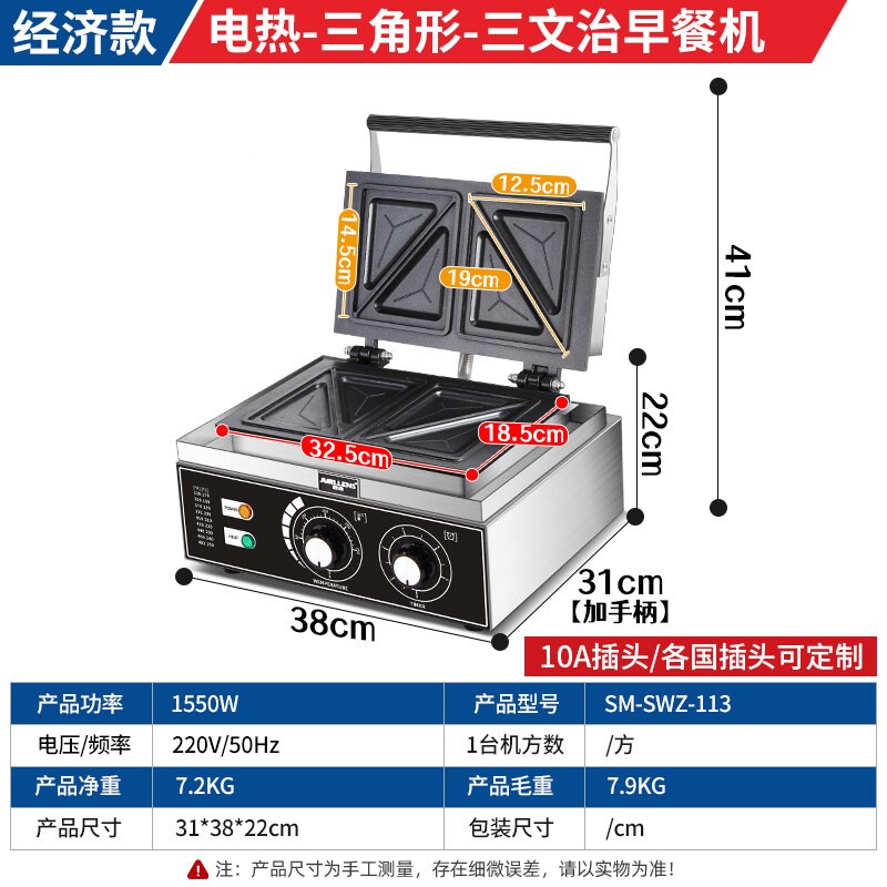 淘单头三明治机商用日式热压方包爆三文治面包机早餐机器浆吐司机