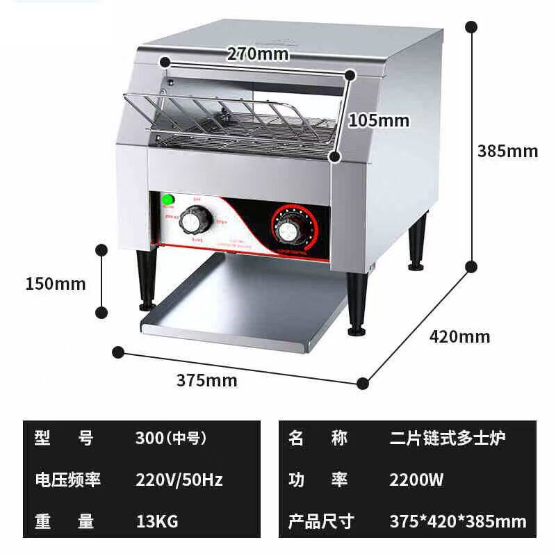 这款商用多士炉专为餐饮场所设计,可同时烘烤6片面包,高效满足高峰时段需求。采用优质不锈钢材质,坚固耐用,易于清洁,符合食品安全标准。配备精准温控系统,支持多档火力调节,适用于烤面包、制作三明治、加热肉夹馍及烤馍等多种用途。4片与6片型号可选,灵活适配不同经营规模。宽大的面包槽设计,兼容多种面包厚度,烘烤均匀,外酥内软。具备自动弹出功能和防卡死保护,操作安全便捷。无论是早餐店、咖啡厅还是快餐店,这款多士炉都能提升出品效率与品质,是商用厨房的理想之选。