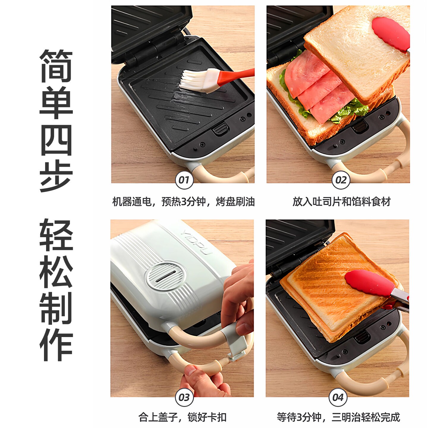 亿德浦三明治早餐机钛陶瓷烤盘家用加厚多功能烤面包机多士炉吐司