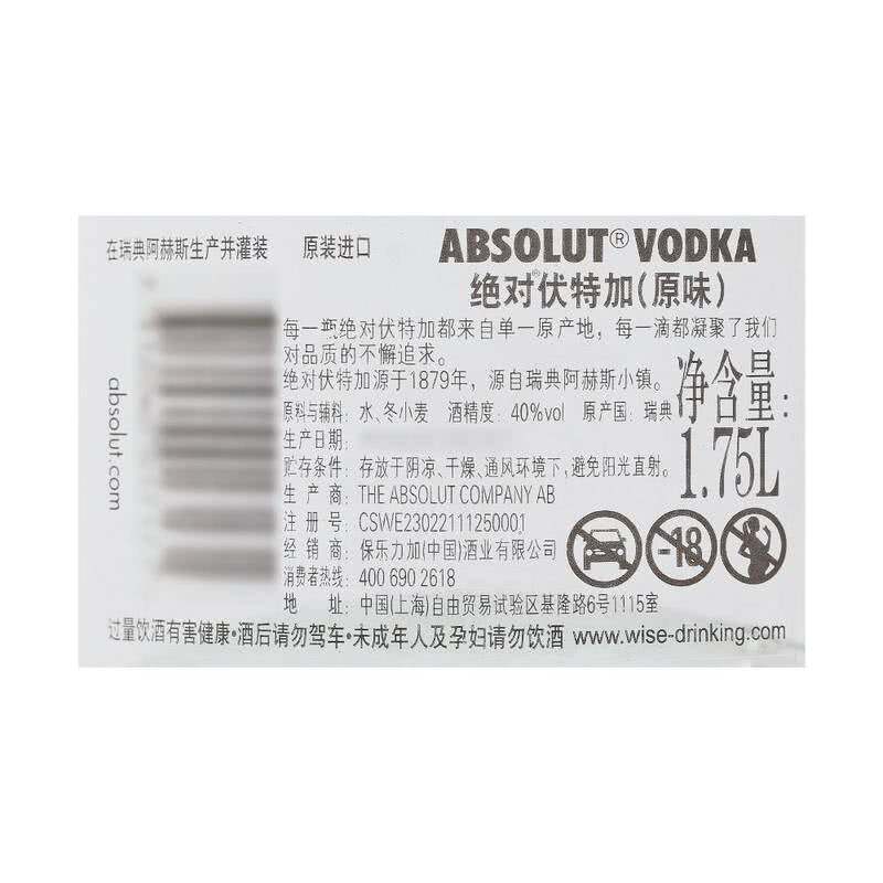 淘宝1.75L大瓶山姆超市代购瑞典进口绝对伏特加原味经典VODKA洋酒基酒