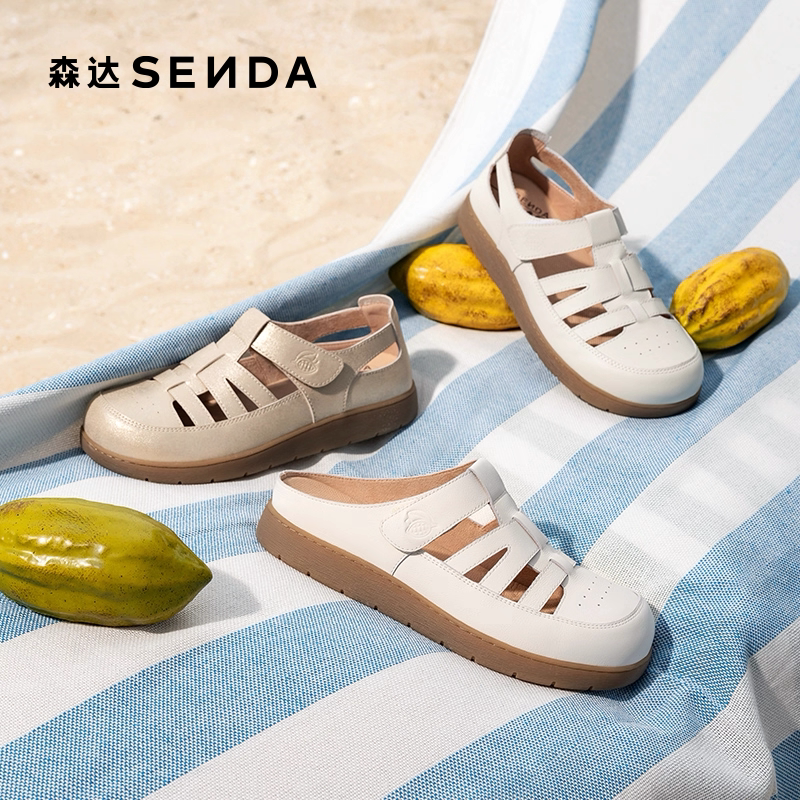 天猫达人同款森达勃肯云朵可可猪笼鞋女休闲罗马凉鞋洞洞鞋包头凉拖鞋