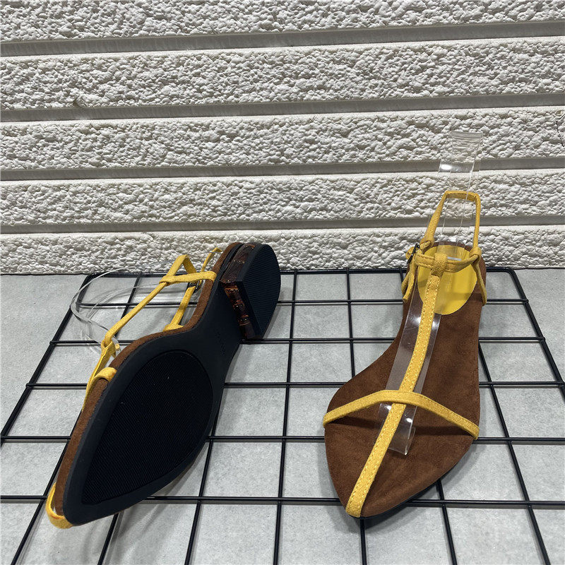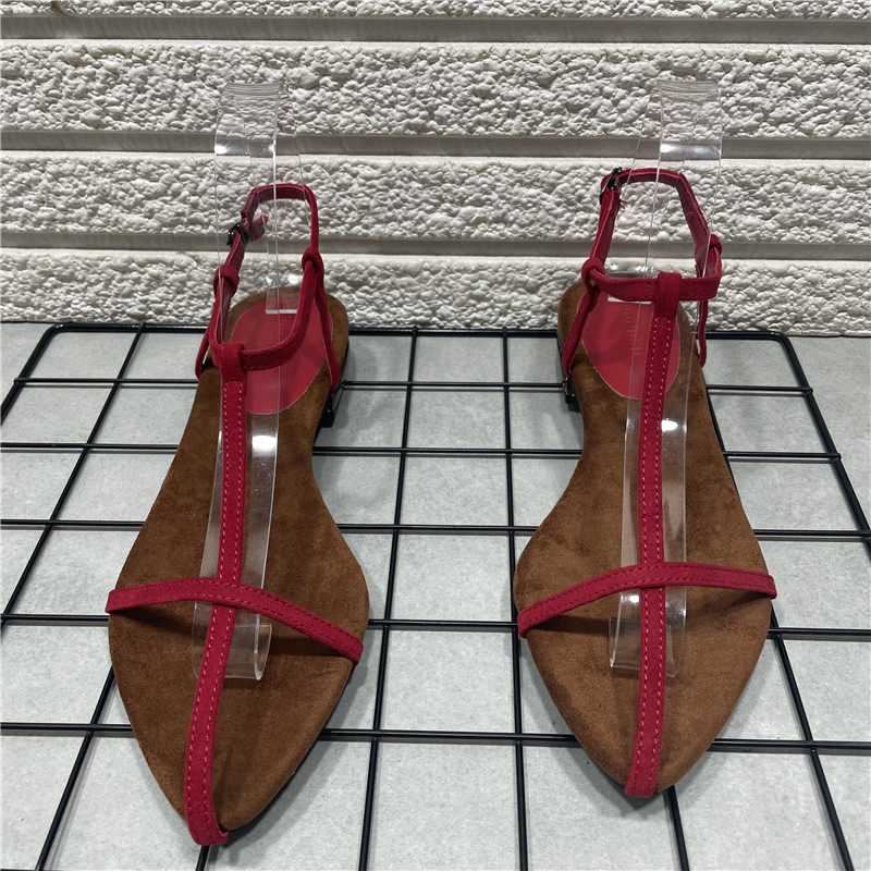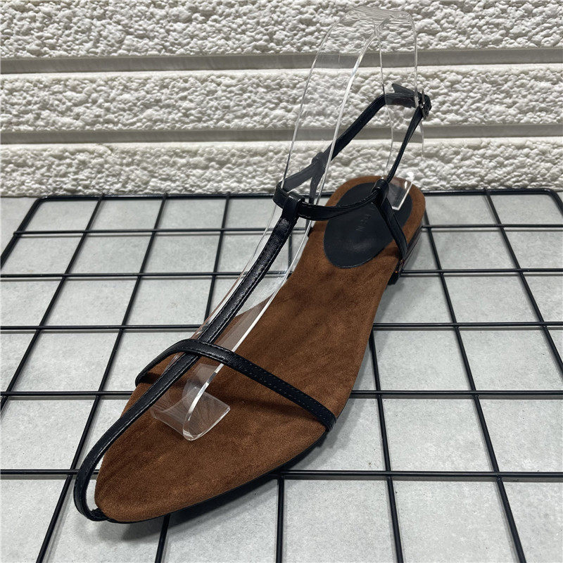 淘宝断码处理尖头法式十字带低跟凉鞋女露趾气质一字扣度假沙滩罗马鞋