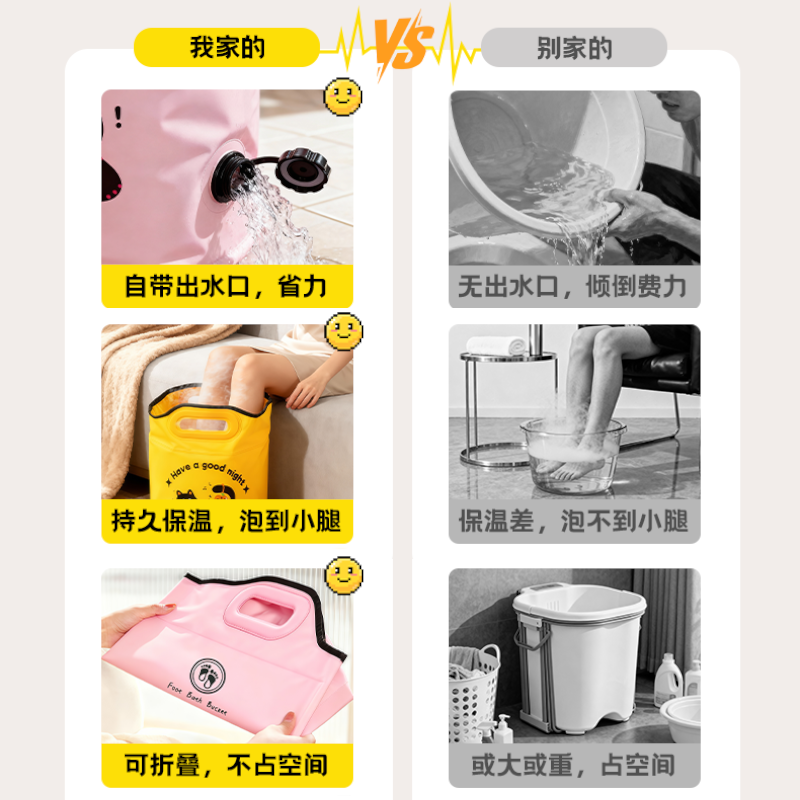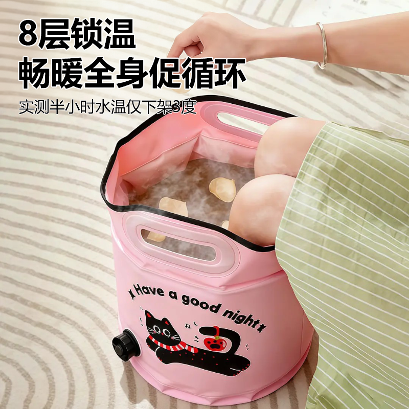 天折叠泡脚桶过小腿泡脚袋家用养生足浴便携洗脚盆保温神器过膝深桶