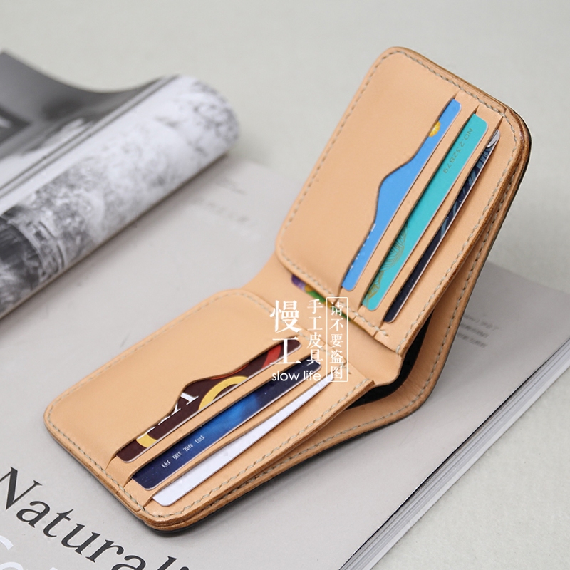 淘宝慢工复古短款圆角8卡位新喜马臀皮钱包纯手工缝制简约原创质感