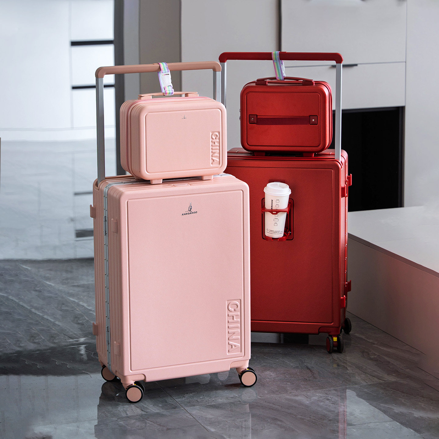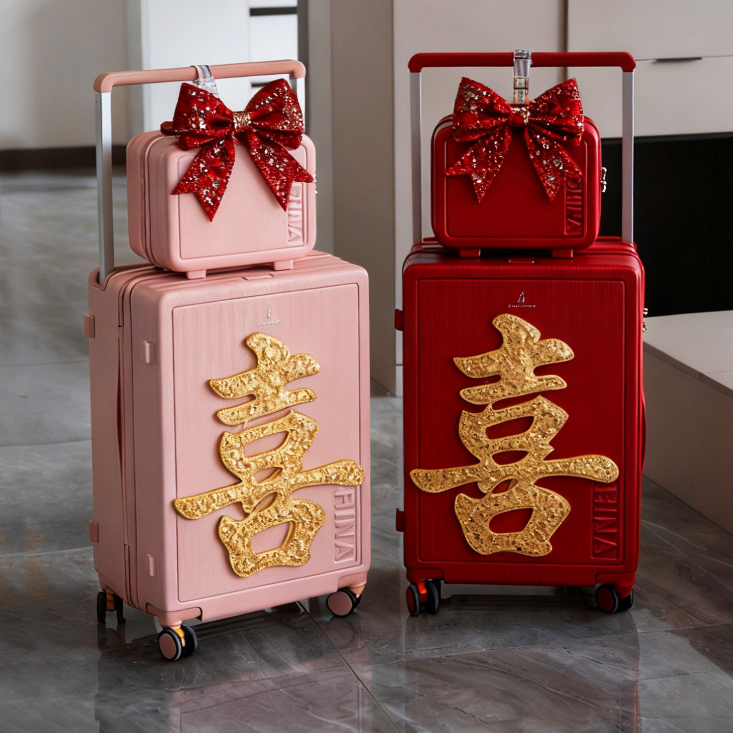 这款袋鼠红色行李箱专为新婚女性设计,是婚礼陪嫁的理想之选。采用喜庆的红色为主色调,搭配浪漫粉色细节,寓意红红火火、甜蜜幸福。箱体坚固耐用,精选优质皮革材质,搭配顺滑拉杆与TSA密码锁,安全便捷。分体式母子箱设计,大箱装衣物,小箱放随身物品,实用又贴心。无论是蜜月旅行还是日常出行,都能彰显新娘的优雅与品味。精致外观融合实用功能,既是新婚礼物,也是开启幸福旅程的美好象征,为新人生活增添一抹亮丽色彩。