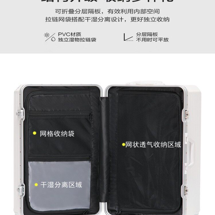 淘正品行李箱功铝框男女20寸务登机电脑子前置开口旅行箱24多商能拉