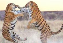 老虎通常会采取非常激烈的手段,动物之间的竞争非常激烈,当两只老虎之间进行斗争时,因为这可能会导致致命的伤害并影响其繁殖中的生态责任。老虎之间会避免发动致命攻击。老虎对自己猎杀技巧的掌握程度非常高,成年老虎则能够依靠本身的狩猎技能生存,老虎斗争过程中的目标是击倒对手,倒地的老虎通常会表现出弱者的行为,许多其他动物会看到这一点并考虑将其作为自己的威胁。这意味着在真正的生存策略中。