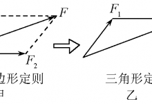 以表示这两个力的线段为邻边作平行四边形,这两个邻边之间的对角线就代表合力的大小和方向,这就叫做平行四边形定则(Parallelogram law)。 三角形定则 三角形定则是指两个力(或者其他任何矢量)合成,三角形定则是平行四边形定则的简化。也就是力的三角形法则。平行四边形法则:以表示两个共点力的 有向线段为邻边作一平行四边形,该两邻边之间的对角线即表示这两个力的合力。