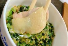 1、锅中加适量清水,放入2只鸡全腿,里面就搁葱姜、大料(八角),大火煮开后,加盖小火煮8分钟,关火再焖20分钟,时间到了捞出,放凉水中浸一浸,放入冰水是为了让皮更爽脆。捞出鸡腿,涂抹上一层芝麻香油,正反面涂抹均匀,放冰箱中冷藏风干。斩出鸡肉骨髓,带点血水也不要怕,倒入适量的酱油、醋、芝麻香油、白糖、味精、葱姜蒜末,葱适量、生抽适量、姜适量、油适量、香菜适量步骤一:姜葱切碎步骤二:倒入生抽步骤三: