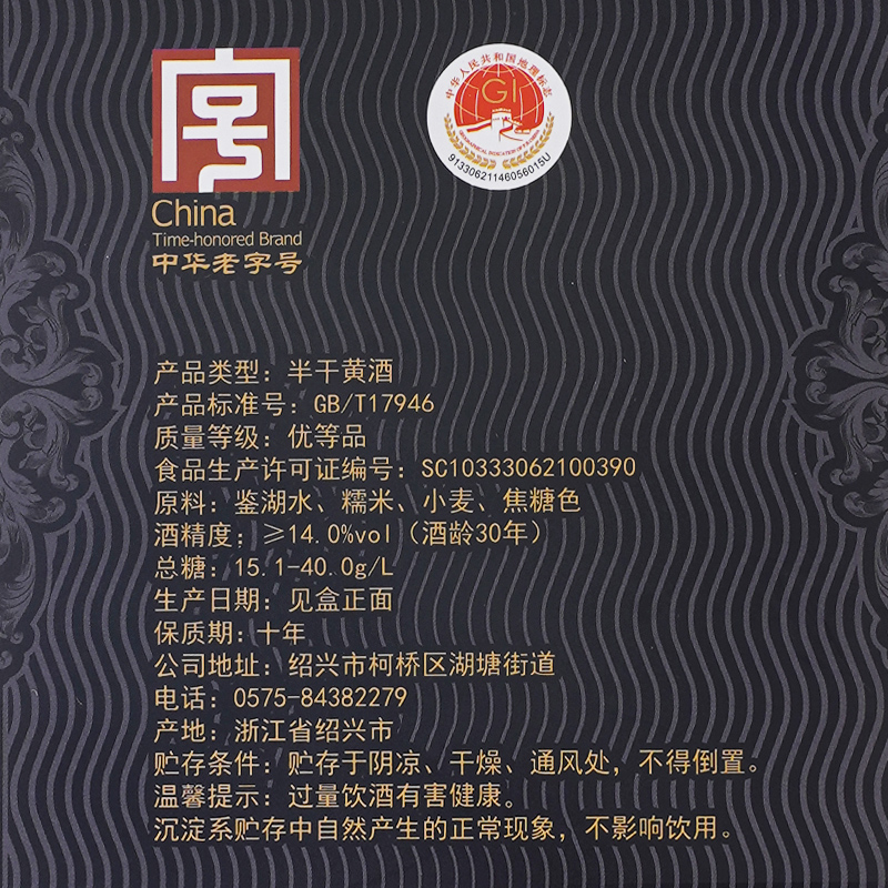 天古越龙山绍兴黄酒鉴湖酒坊1989库藏二十年680ml*6瓶花雕酒礼盒酒