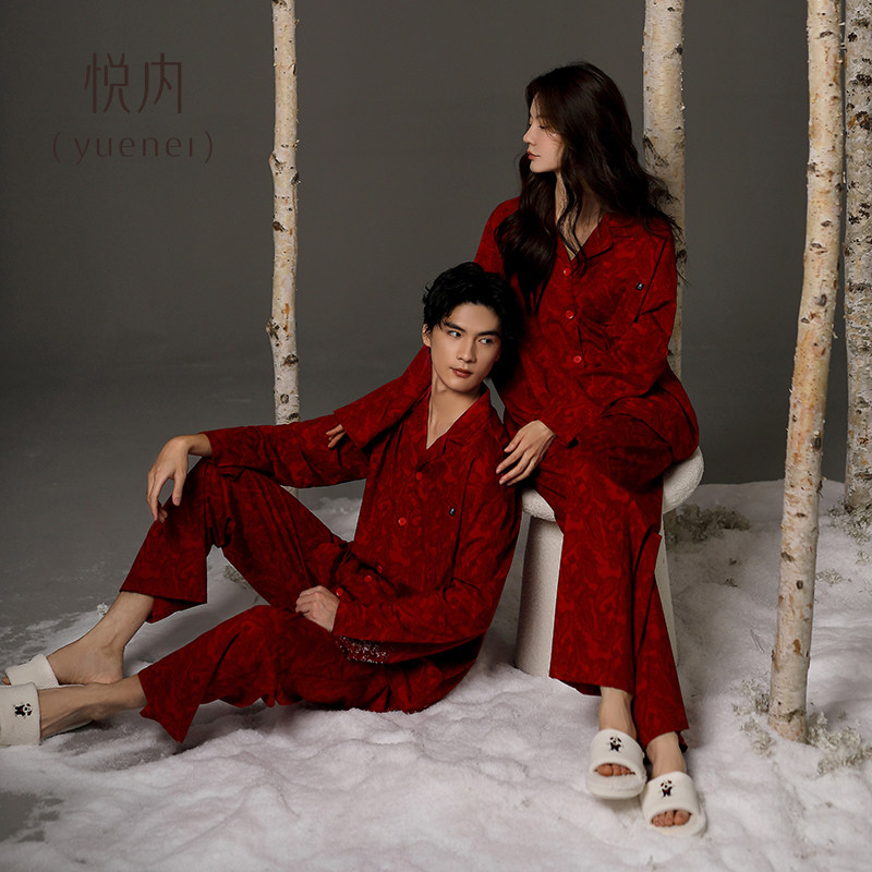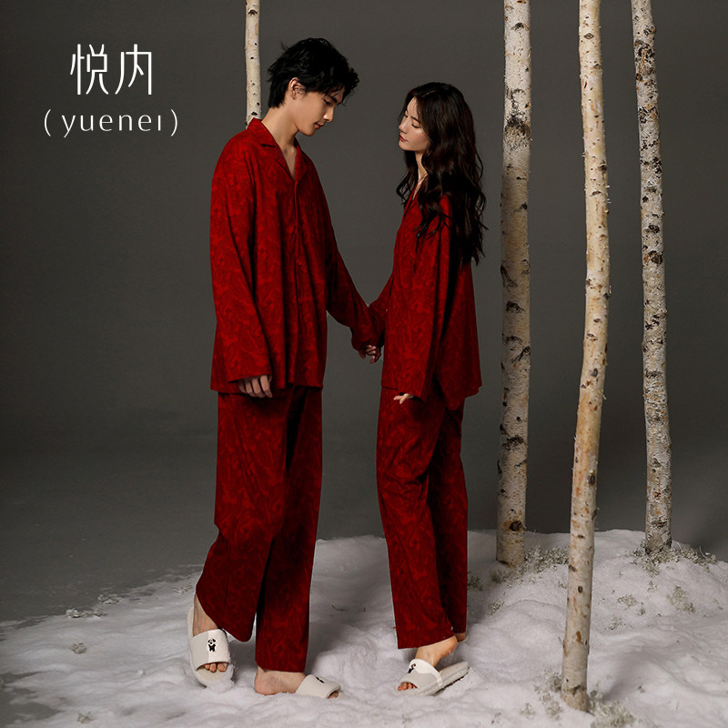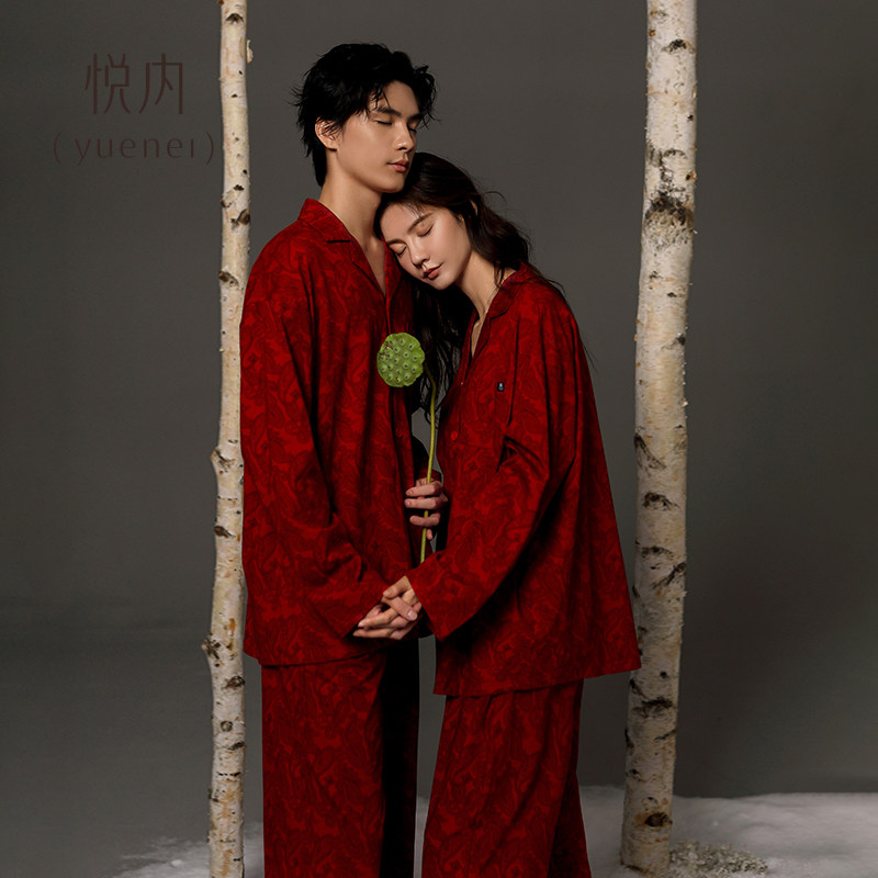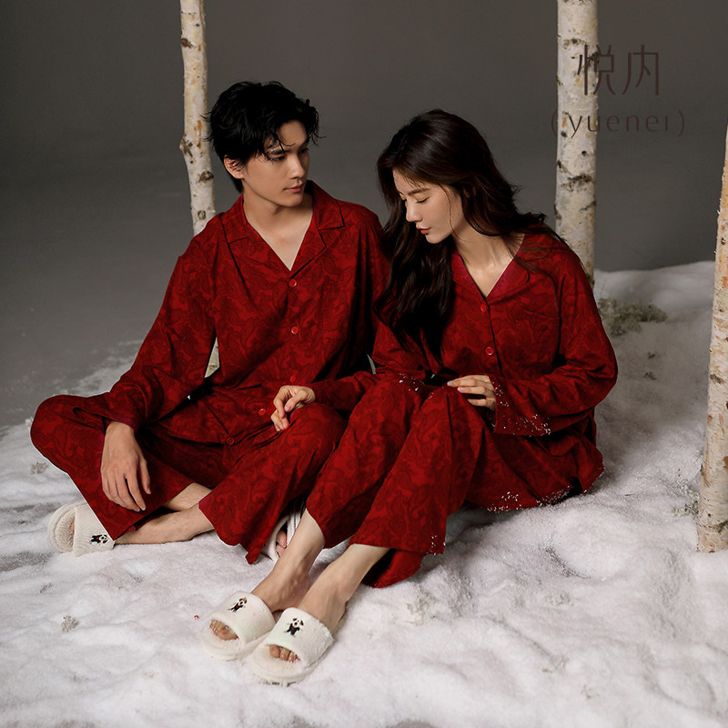 天猫悦内红色睡衣结婚新婚情侣套装新人纯棉女款春秋家居服男士本命年