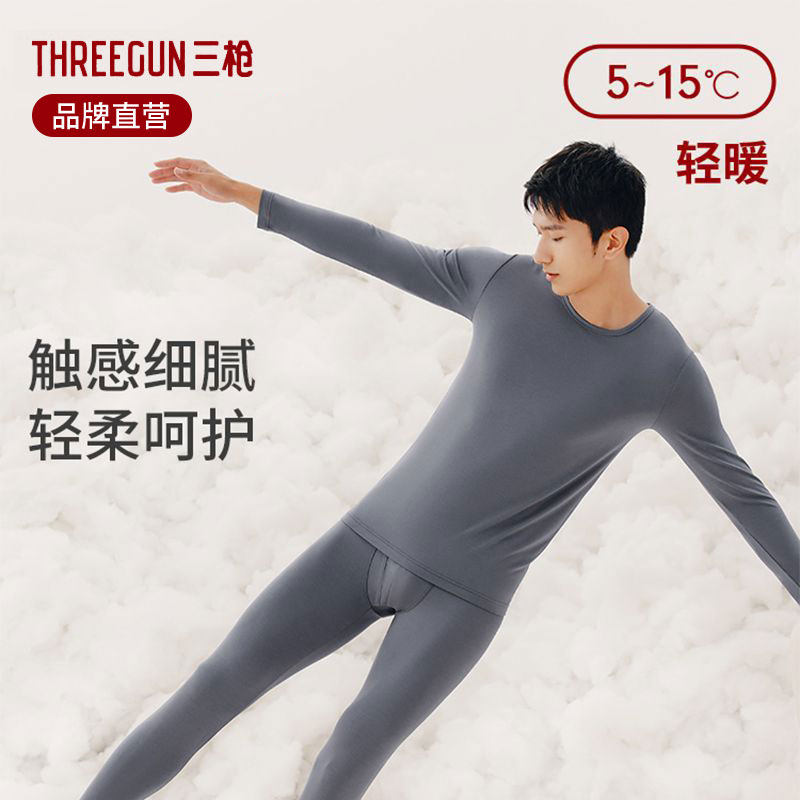 天猫三枪秋衣秋裤男款轻薄保暖内衣套装50支莫代尔弹力无痕肌底衣大码