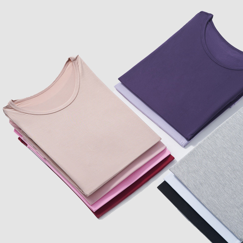 天秋冬薄款前后U领大圆领长袖T恤打底衫长裤套装秋衣秋裤纯色莫代尔