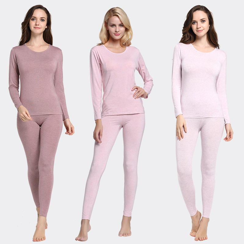 天秋冬薄款前后U领大圆领长袖T恤打底衫长裤套装秋衣秋裤纯色莫代尔