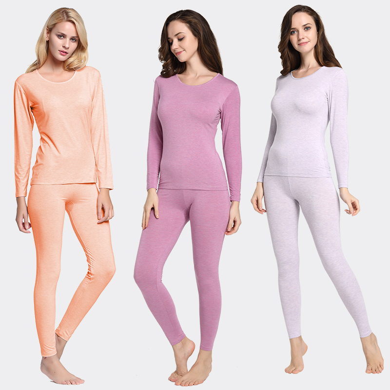 天猫竹纤维秋衣秋裤女薄款修身莫代尔女士保暖内衣套装加肥加大码打底