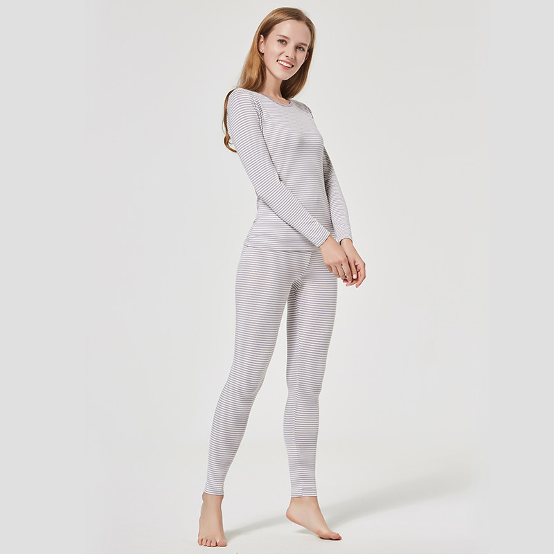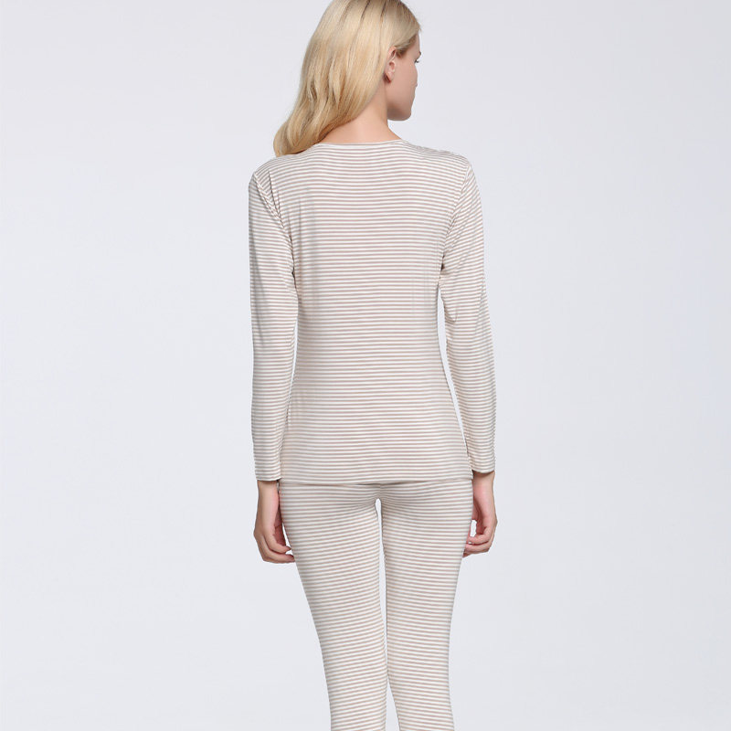 天猫竹纤维保暖内衣女套装秋衣秋裤薄款条纹女士打底内衣加肥加大码