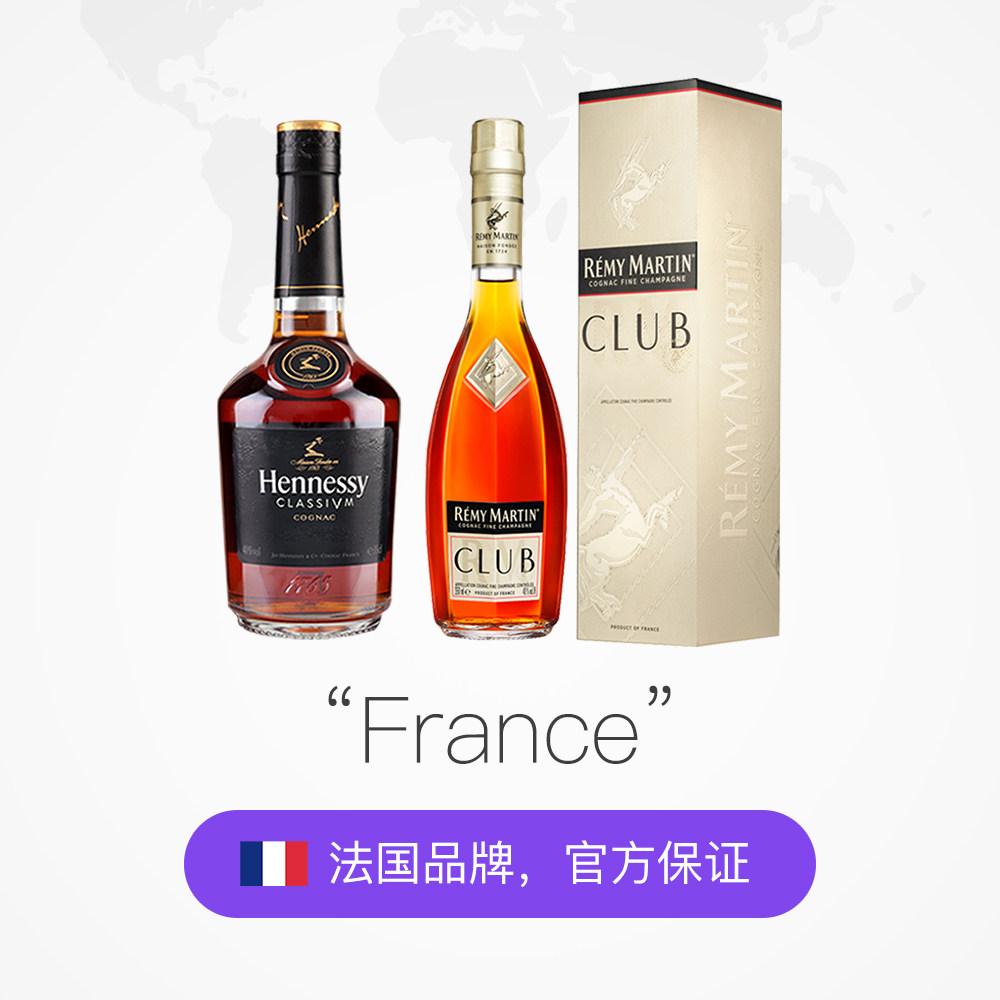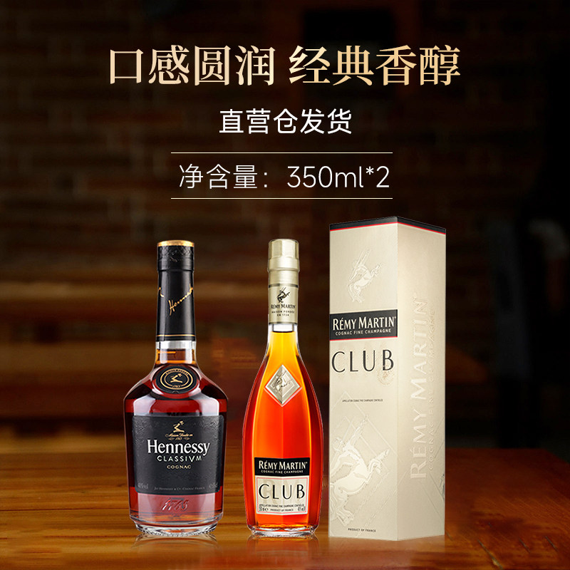 天猫【自营】轩尼诗新点350ml+人头马CLUB350ml 干邑白兰地 进口洋酒