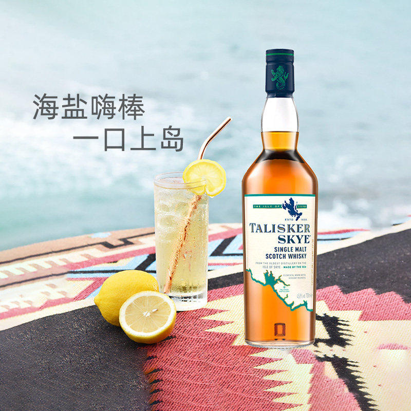 泰斯卡Skye斯凯岛苏格兰单一麦芽威士忌1L是一款来自苏格兰西海岸斯凯岛的原装进口海岛威士忌。酒体呈明亮金色,洋溢着清新的海盐气息与热带水果的甜美,伴随烟熏、胡椒辛香和淡淡柑橘风味,层次丰富而平衡。其独特的海洋风格源自岛屿独特的气候与纯净水源,经传统铜壶蒸馏与雪莉桶熟成,赋予酒液深邃个性。酒精度45.8%,未经冷凝过滤,保留原始风味。无论是纯饮、加冰或调制鸡尾酒,皆能展现其强劲而优雅的海岛魅力,是探索苏格兰单一麦芽威士忌风土特色的经典之选。
