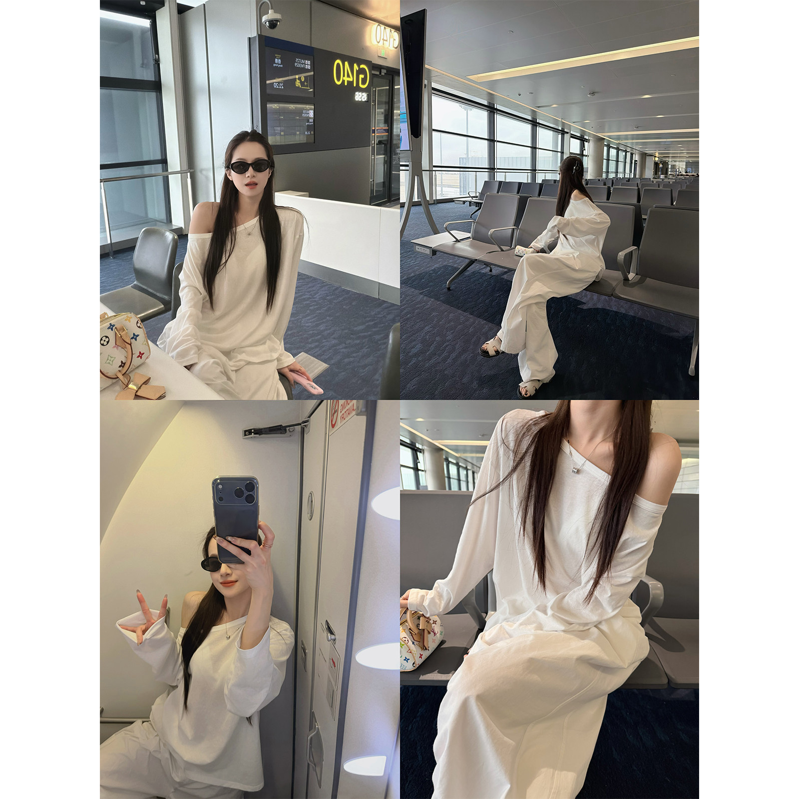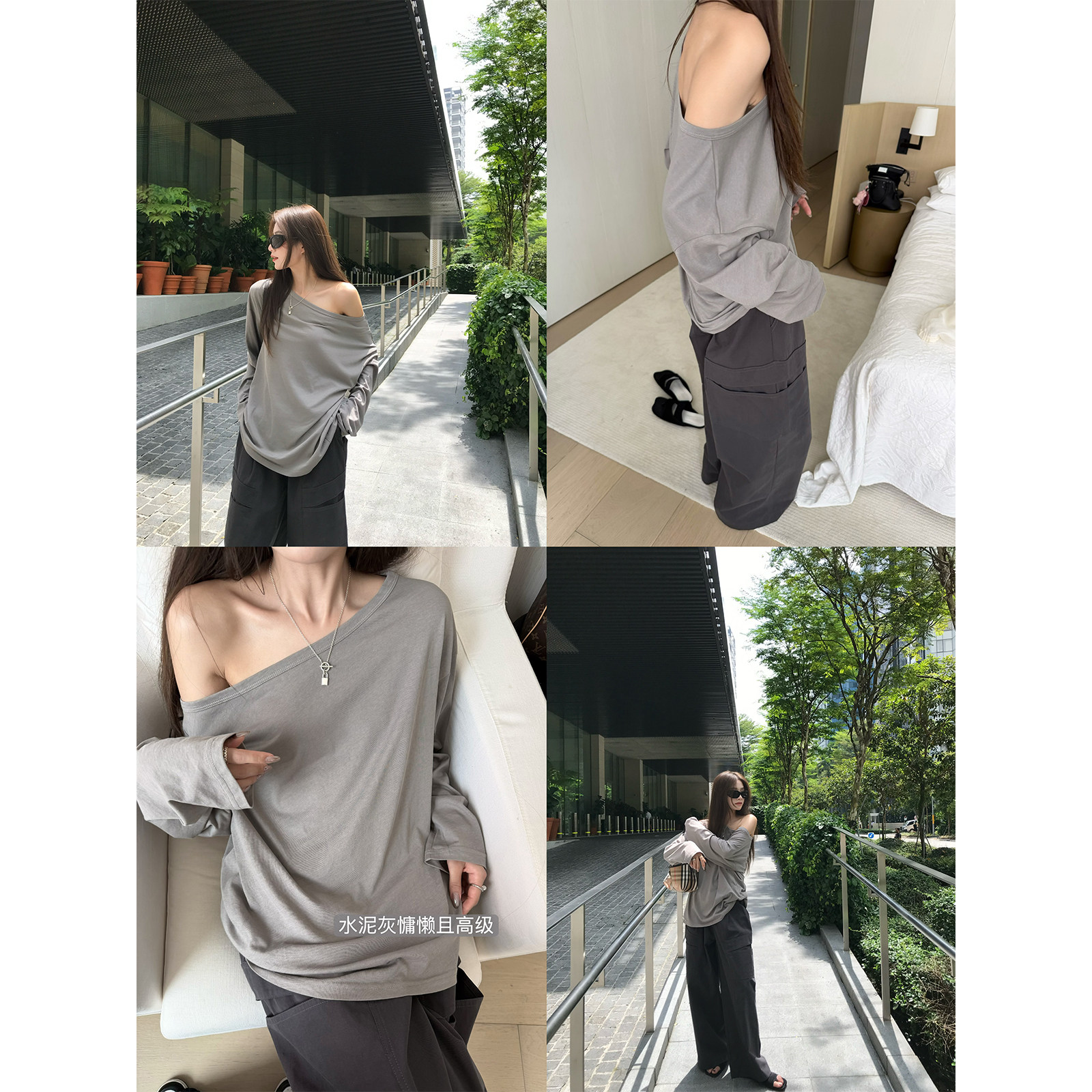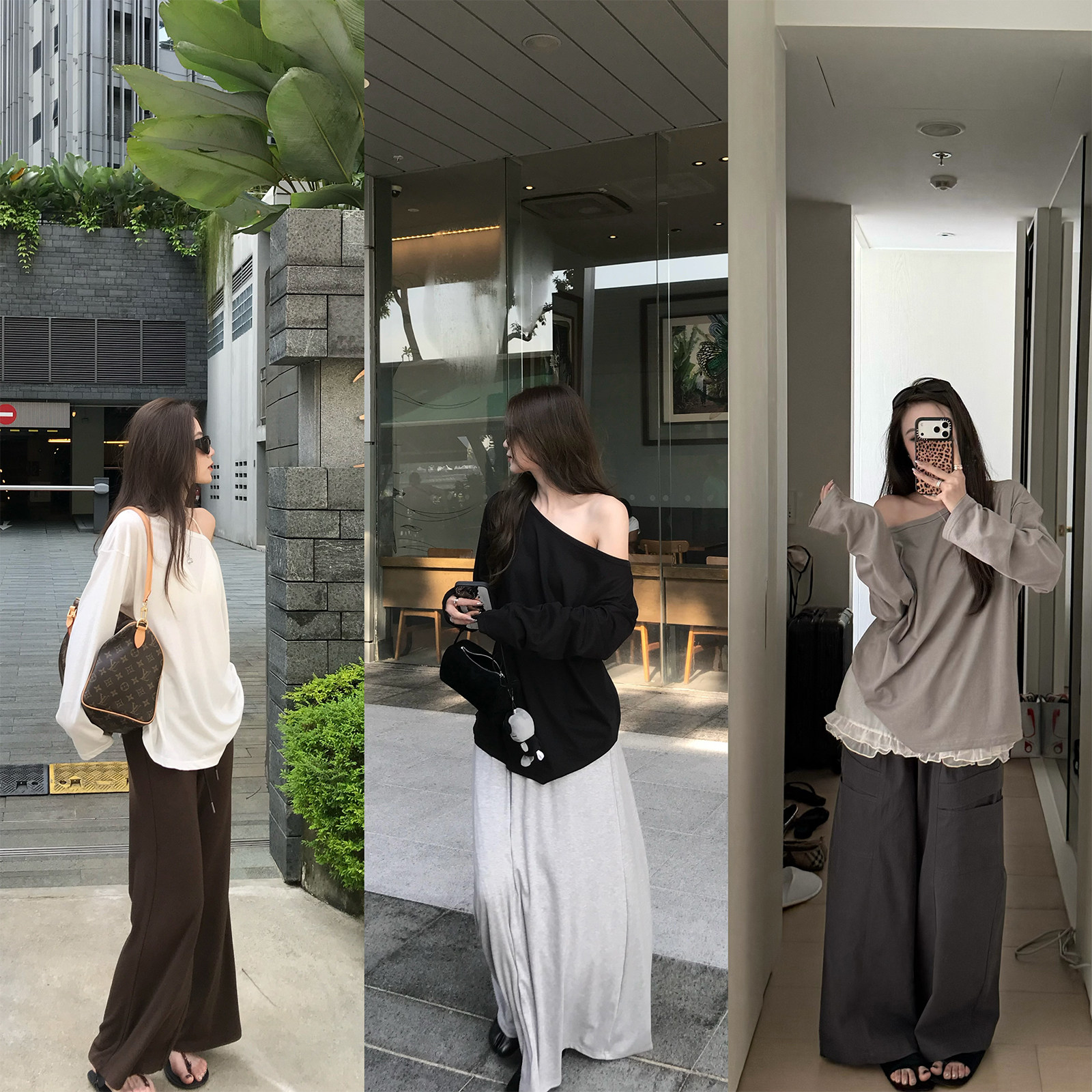 淘宝superniniyy 冰镇奶咖&淡人系穿搭露肩松弛感极简长袖宽松大大T恤
