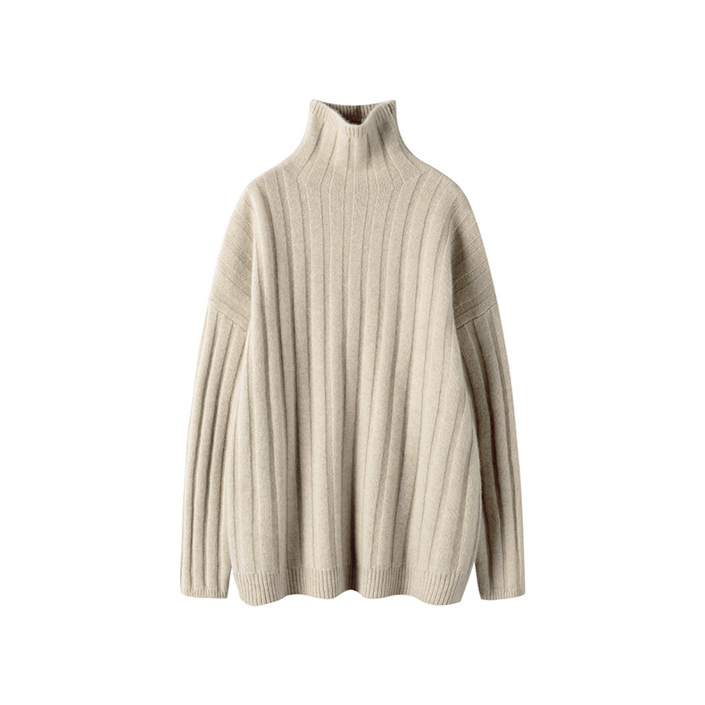 康家线~新款纯山羊绒衫女卷边半高领纯色宽松针织打底衫毛衣内搭