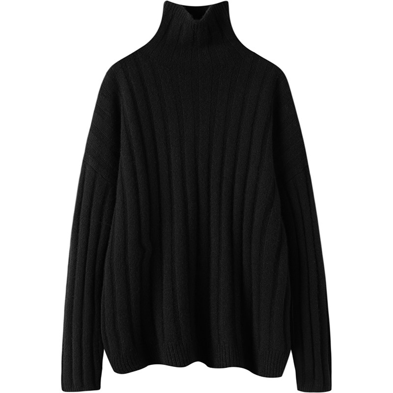 天猫男女黑色粗坑条重磅山羊绒粗棒针织加厚短高领毛衣衫
