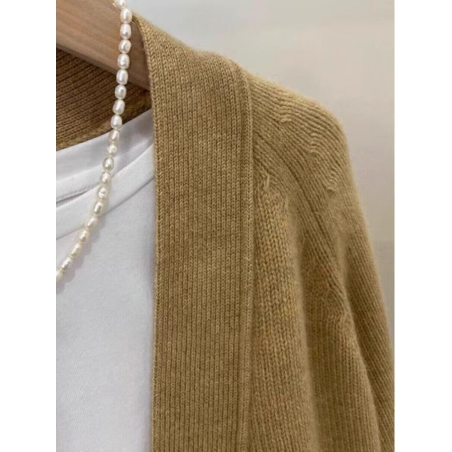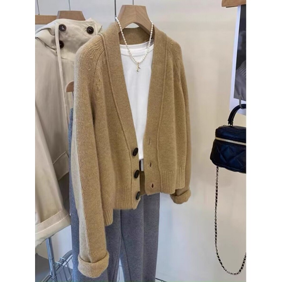 淘宝100%山羊绒针织开衫女卡其色25新款V领宽松显瘦简约加厚毛衣外套