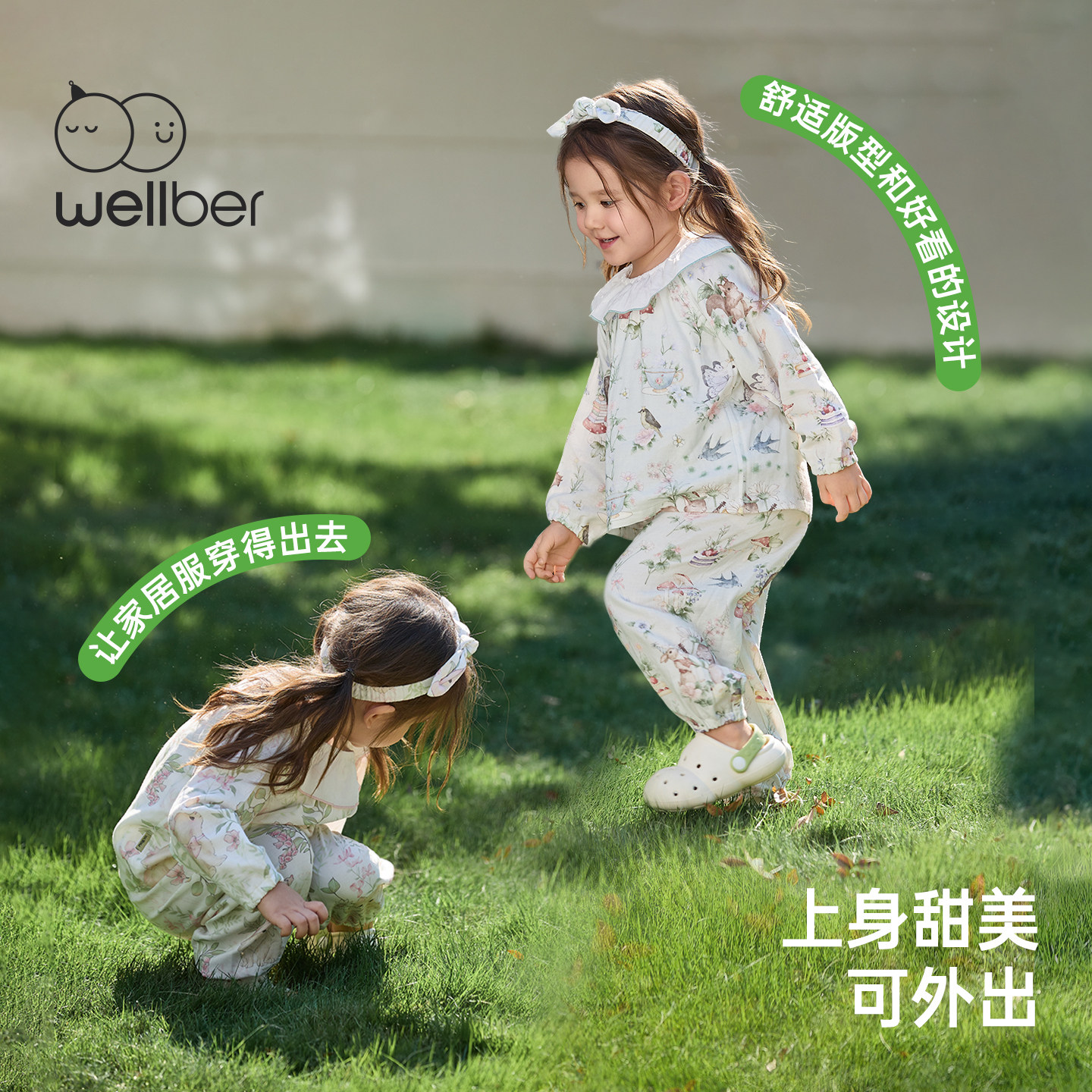 天猫威尔贝鲁女童睡衣套装春夏儿童竹棉纱布可外出家居服宝宝空调服薄