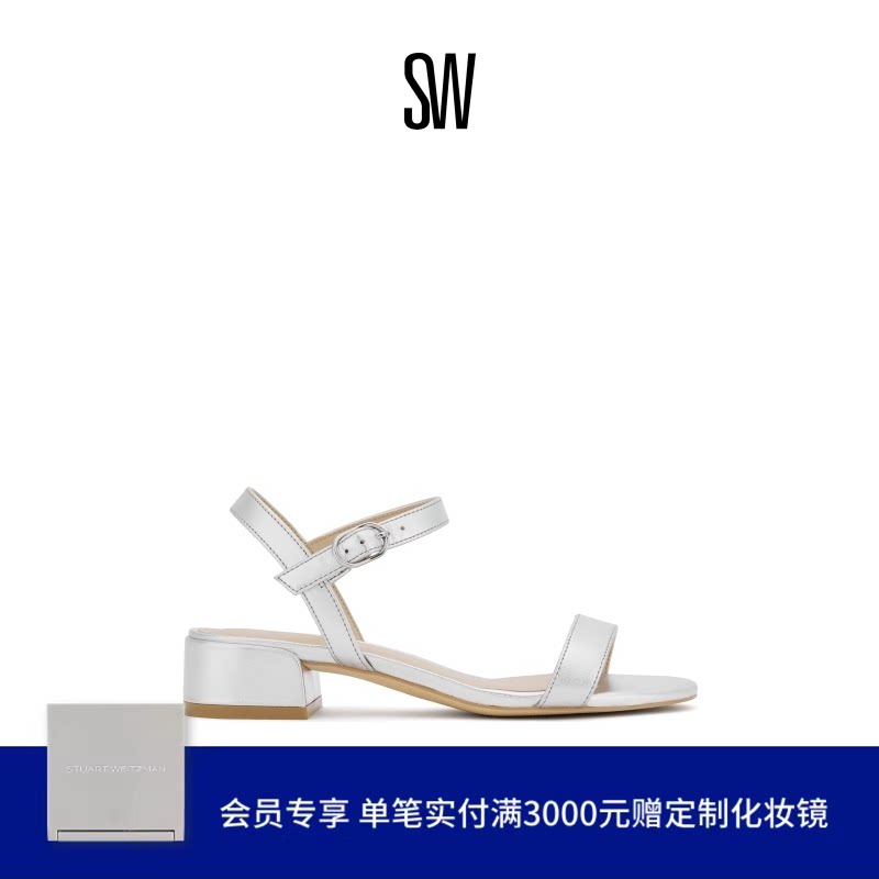 天猫Stuart Weitzman/SW DANCER 35 BLOCK SANDAL 一字带方跟凉鞋女