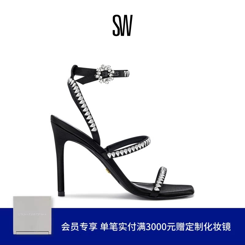 天猫SW GEMCUT 100 STRAPPY SANDAL 水晶细高跟罗马凉鞋一字带凉鞋女