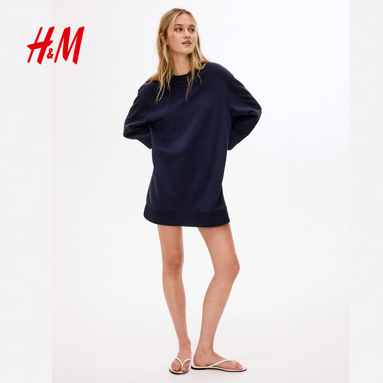 天猫HM女装连衣裙2026春季新款松弛慢人风度假风简约卫衣裙1234798
